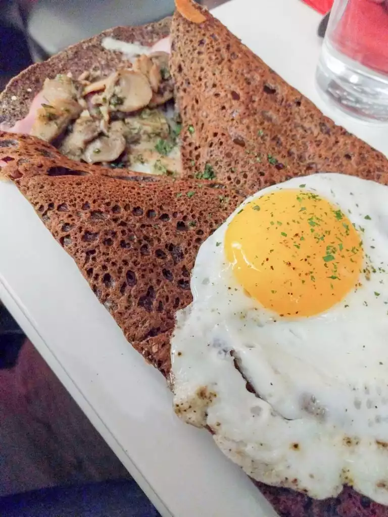 My vegan daughter and I found this awesome restaurant and were over-the-moon happy with every aspect of our experience. The food was a celebration, and I -as a non-vegan- found it completely satisfying, and not lacking in any way. For appetizers, I had escargot, my daughter had the roasted Brie. Fantastic! For our main course we kept it classic and ordered Bœuf Bourgignon, and Coq Au Vin. Again, fantastic. For dessert we ordered Lattes and Crêpes Francinette. Again, fantastic. I ordered a Sauvignon Blanc with my main course. We both also had a bottle of bubble water. The restaurant is beautiful and quiet enough to actually enjoy your companion in conversation. The waitstaff was attentive and professional. The vibe was not pretentious, which I appreciated. I was traveling in a nice pair of blue jeans, but did not feel out of place. I felt the restaurant was really just wanting you to come and enjoy the great food, and dine in the best tradition of that word. Price-wise, this was a splurge for us. But worth every penny. I highly recommend Delice and Sarrasin to anyone who enjoys good food and lovely atmosphere.