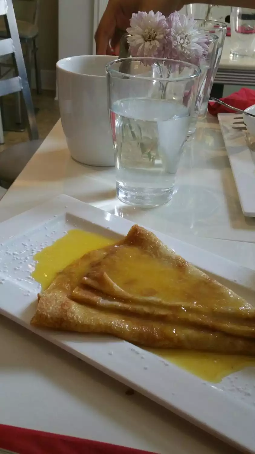 The menu looks promising, with a wide range of crepes, both savory and sweet. Our group filled several tables, so we sample a variety of both types. Actually, they serve Galettes, or BUCKWHEAT, crepes style; thin and fried. The flavor is very different than we expected, especially after many trips to France. The galettes are chewy, with a nutty flavor that some may like. None of these were what we sought. We hoped for a solid old fashion wheat based crepe. The dessert "crepes" make up for it a little. They serve excellent tea and coffee. Service, BTW, is outstanding.