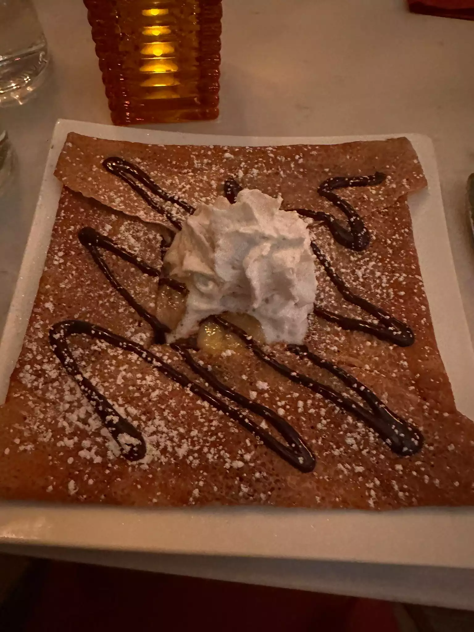 We visited the restaurant for dinner. We enjoyed savory galettes for dinner. The buckwheat used for the galette is imported from Italy. We also enjoyed a crepe gourmandes to finish our meal. This is a wonderful small restuarant. The service was excellent.