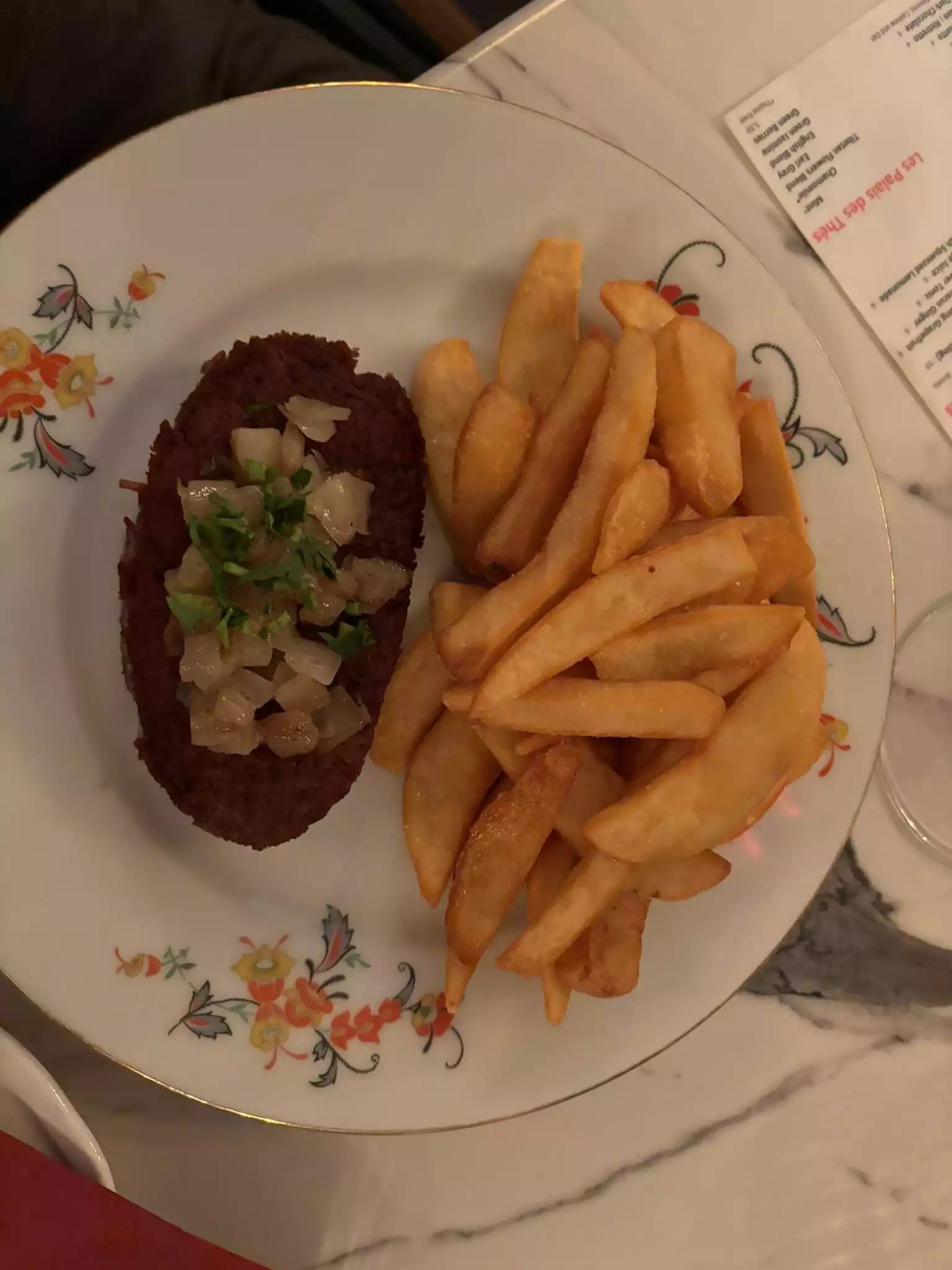 The restaurant looks very nice, good chairs, nice background music. The service is attentive. The food was a bit less amazing than I had expected. Still good, but not great. The melted Brie was very good, just a relatively small piece though. The snails were quite good. The steak tartare was so so. The taste was at first good, but too distinctive, which is why I couldn’t finish it. The steak with truffle fries was nice. The chicken legs were quite nice as well. It has chorizo in it, but my son only found 2/3 small pieces of chorizo in the dish. They did a good job at creating a French vegan experience, but somehow it’s not 100% there yet as far as the flavors go. Maybe copy the real thing a bit less to have more focus on the taste? It was good, but not as great as I had expected.