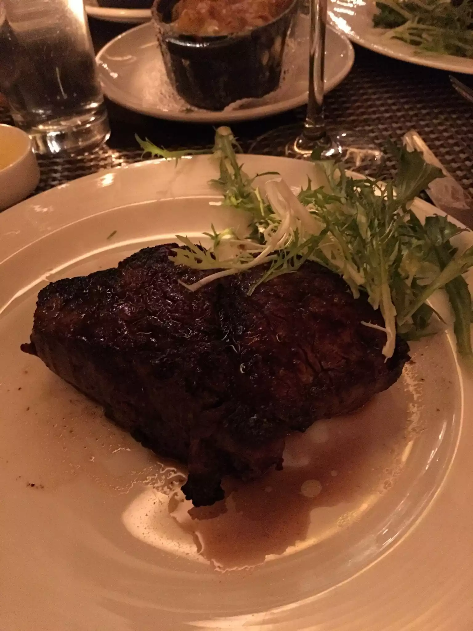 My adult son and I visited the city in early March for our first time there. This gem of a restaurant was our first night's dinner. It was a weekday and a bit late, but there were seats available. The staff was attentive and knowledgeable without being intrusive. There is a good drink and cocktails menu to start the meal. A red wine was my choice and my son enjoyed a whisky drink. We each had a steak (filet and a strip, I think.) and ordered two sides to share, mushrooms and the potatoes. Everything was amazing. It's an upscale environment, so go looking at least business casual. Prices are high even compared to just the NYC restaurants we found on our 5 day stay. This one was hands down the most expensive. As long as you are prepared for that, go. It was a great meal.
