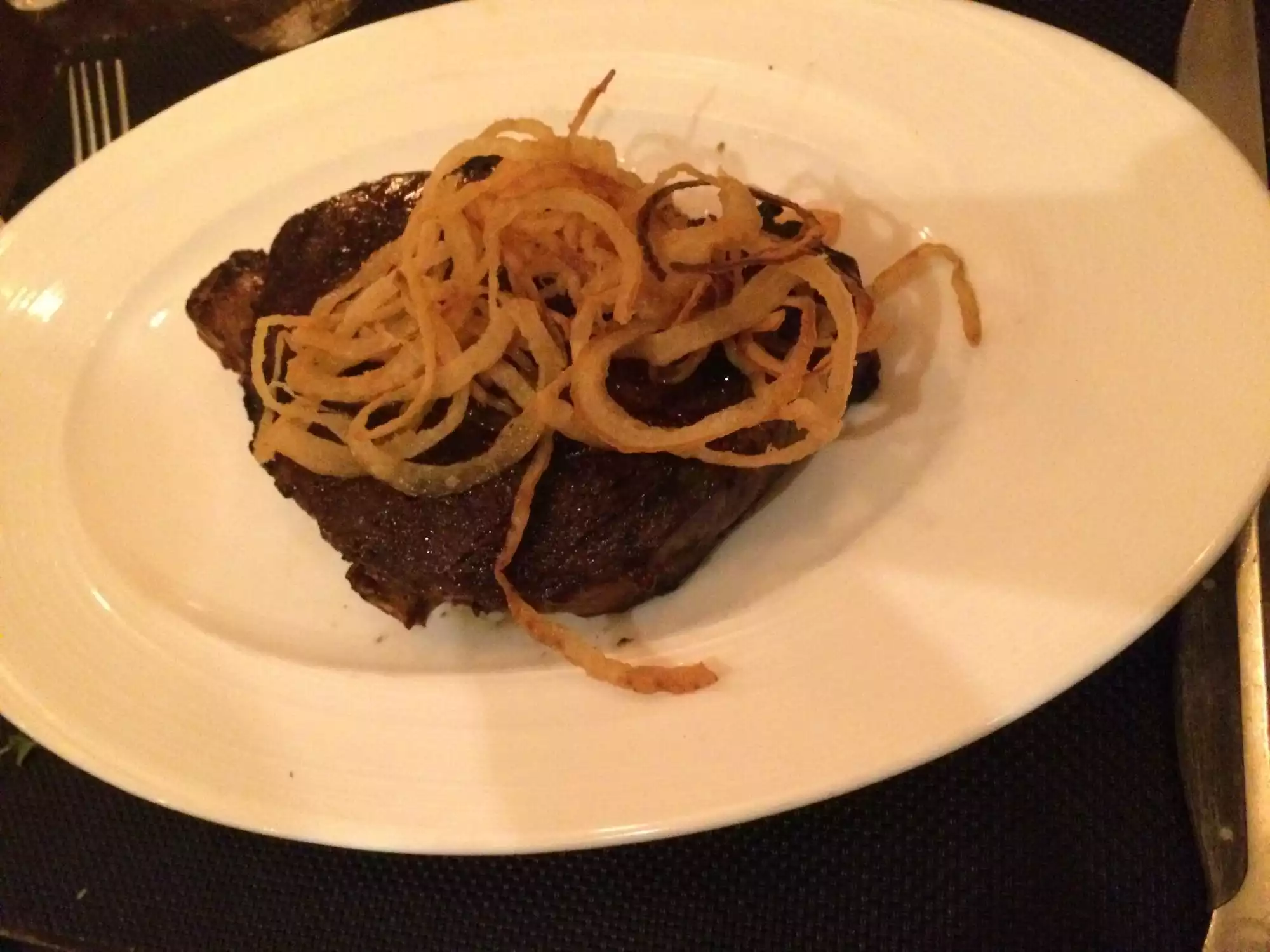 The steak was excellent and order the appetizer or small plate of onion rings with blue cheese dressing.