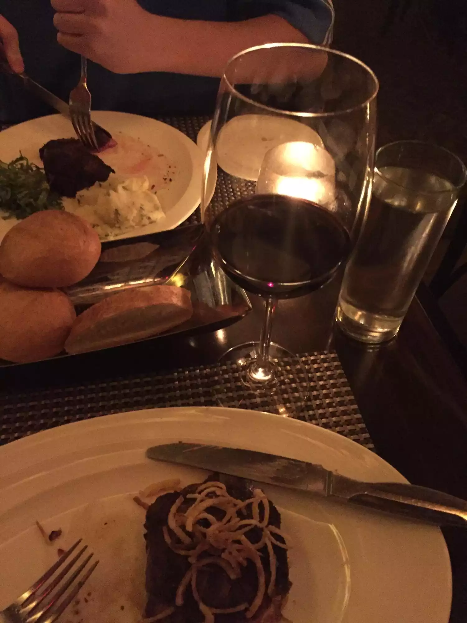 Quite after a 20,000 steps day. Not overpriced good service and quality meat. Good choice of wines by the glass.
