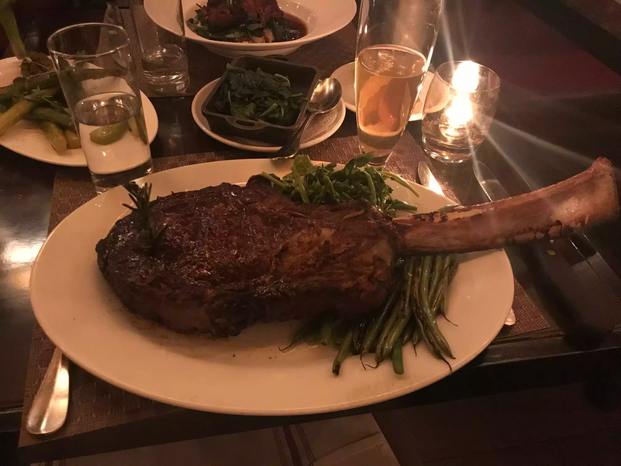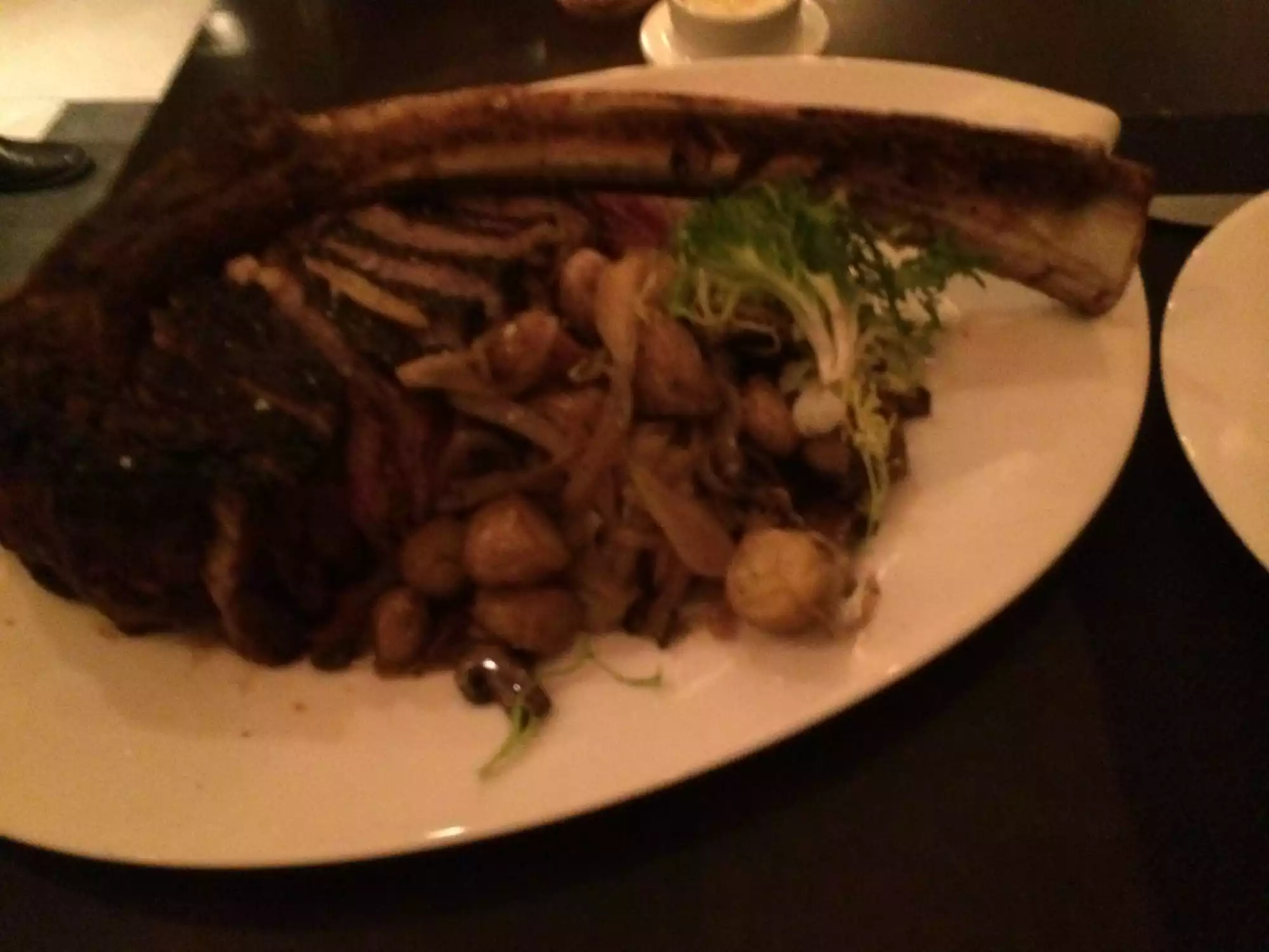 The food was amazing and the server was attentive and knowledgeable of the menu. We stopped in on a recommendation from someone else who is employed near the restaurant. I ordered the "tomahawk" steak. Which was the largest piece of steak I have ever seen on a plate in my life. It was cooked to perfection. Our appetizer was the slab bacon which was cooked with a sweet glaze. It was amazing. I am definitely going back.