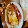 Came with my dad. It was short staffed and therefore took a long time to seat us, even though it was not busy. Took 45 mins for food to come (blueberry pancakes) and it was missing the hash browns. One appeared (second didn’t) after eating the eggs and bacon. The food was cold and the pancakes were also missing for my dad and arrived after another 10mins. Totally disappointing.