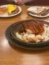 Located on the Las Vegas Strip at the Showcase Mall. My wife and I dined here for dinner. We each had an Iced Tea. We both ordered the 55+ Meal Deals. She ordered the Salmon with two sides and I ordered the Country Fried Steak. We both got a Country Fried Steak. The waitress said my wife ordered the Country Fried Steak, and doubled down on it. I heard what she ordered. Salmon. My wife does not eat anything with a cream sauce. That got corrected after a few minutes for them to cook the salmon. The sides were very good, nice dinner salad with great tasting dressing and rice pilaf. Our waitress was good overall, but do not double down on something you were wrong about. Photos added.