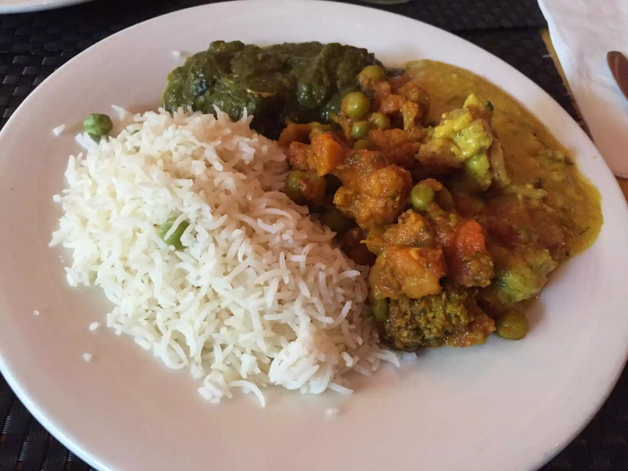 Extensive menu with a nice selection of British version curries in the last page of the menu. Not cheap, but reasonably priced. We had lamb dhansak and a vegetable bhalu - both well spiced and tasty. Somosa was our starter and I was a little disappointed in the crispness of the pastry. Rice was clumped together and let the presentation down somewhat. The physical facility needs a makeover. Missing wall at the entrance, dirty and broken light switch by the door which clanged every time it shut, and tired decor. That said, friendly staff and good food will make for a return visit.