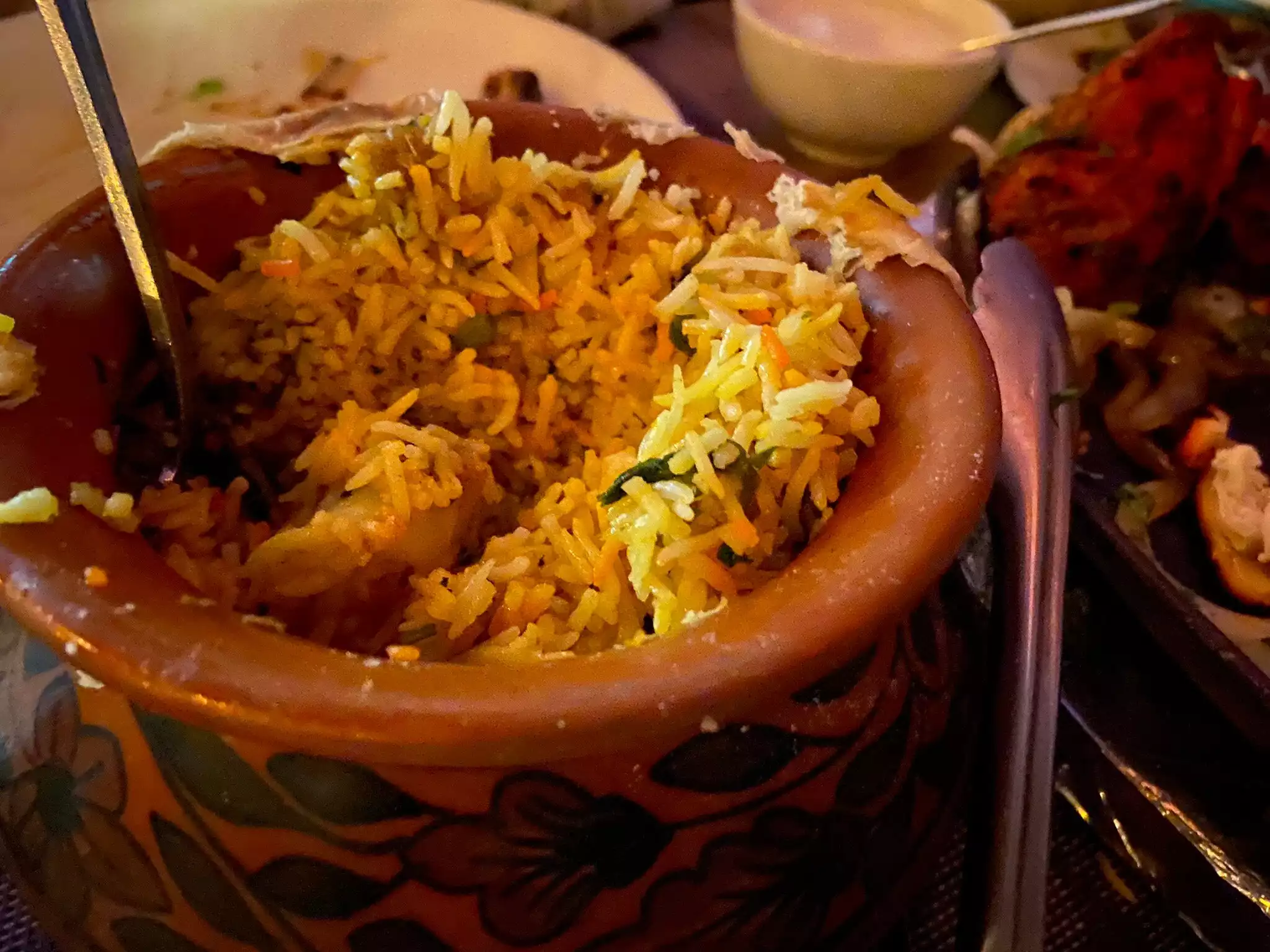 We are planning to go to another restaurant on Lexington but it didn’t look good and saw Dhaba so decided to check it out. We had no expectations but were pleasantly surprised at the great food chapati and chutney were served immediately and we ordered choole bhature, vegetable biryani and murgh tandoor the chole bhature were very good - we’ve had them at many places and one or the other is good but not both and here both were good the vegetable biryani was excellent and had great flavor the murgh tandoori was also good - we ordered regular naan and peshawari naan - the regular tandoori naan was good; the peshwari had raisins and nuts which were odd overall — good food in a nice ambiance