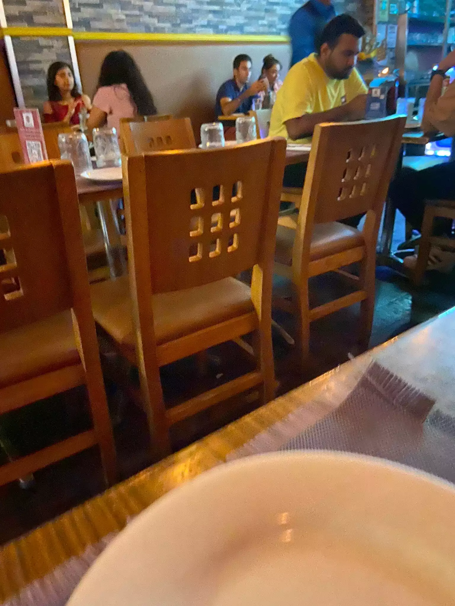 I never understand why desi restaurants need to be rude. Maybe it's a thing. Waters don't care about you. They throw cheap crumpled napkins on the table. It is very noisy here. But that's not the restaurant's fault. Just the kind of people who come here. Forgive me if I sound racist. I'm a desi myself. Place is cramped. Very cramped. And not in a nice way. Painful to the ears.