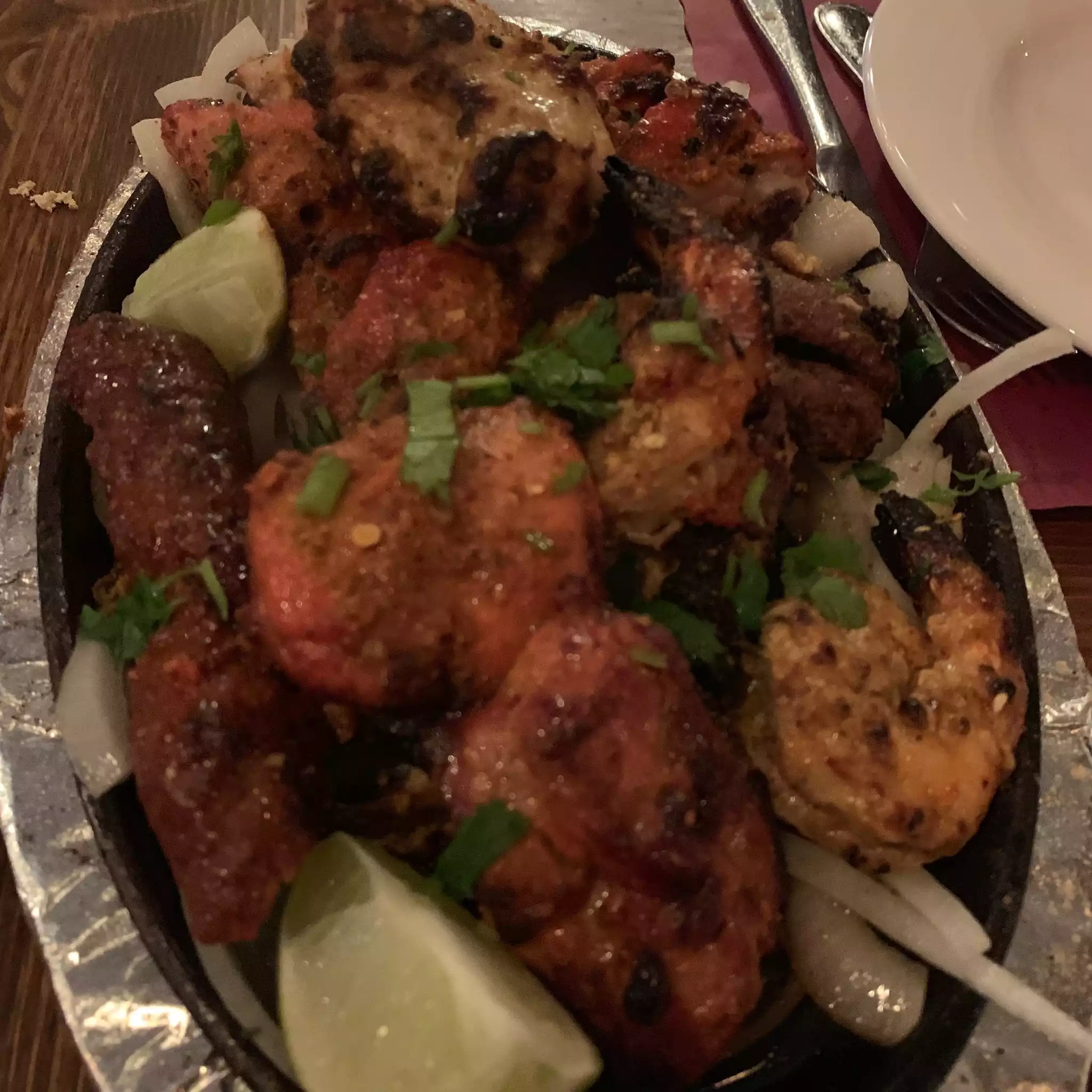With a friend in town a group of us came here for dinner during the week. We had made a reservation and were seated immediately. We had a lot of different dishes. Their complimentary papadum were delicious, and one of my favorite Indian snacks. The mushroom appetizer was great. The mixed grill is a large portion with a lot of variety, great for sharing. The butter chicken and chicken biryani were both very good, especially the butter chicken. We then got the chicken tikka masala which wasn’t as good as the rich butter chicken sauce. Overall great place and reasonably priced.