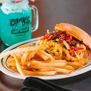Service with an ATTITUDE is their slogan,so I knew I was in for a real treat!!! They make you these awesome paper hats with disturbing-yet funny "sayings" written on them... For example mine stated( Cougar looking for some young- white meat ) 😳🙈omg!!! And my 14 year old daughter was at the table(I know) but guess what her hat stated!!!! (Stripper in training) YES my mouth hit the floor but it was all in good fun!!!!! The food was delicious and atmosphere was Krazzzy!!! So I guess my mother was ready to leave cause she said in her "Outside" voice- I'm tired of Dick's( imagine that) everyone in listening distance fell out.... Great memories Dick's..... And by the way, I'm NOT tired of Dick's😘