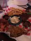 Stopped here for dinner while on business trip. Heard this was a fun place and wasn't disappointed. Since I was solo I was overlooked for the the tomfoolery and shenanigans but I did enjoy seeing other groups being teased and taunted. Food was nothing special. Typical BBQ fare. Came by bike so parking wasn't a problem--just secured it on patio. Overall a nice experience for this 'tourist' because of the free entertainment provided by the waitstaff and other customers being harassed.
