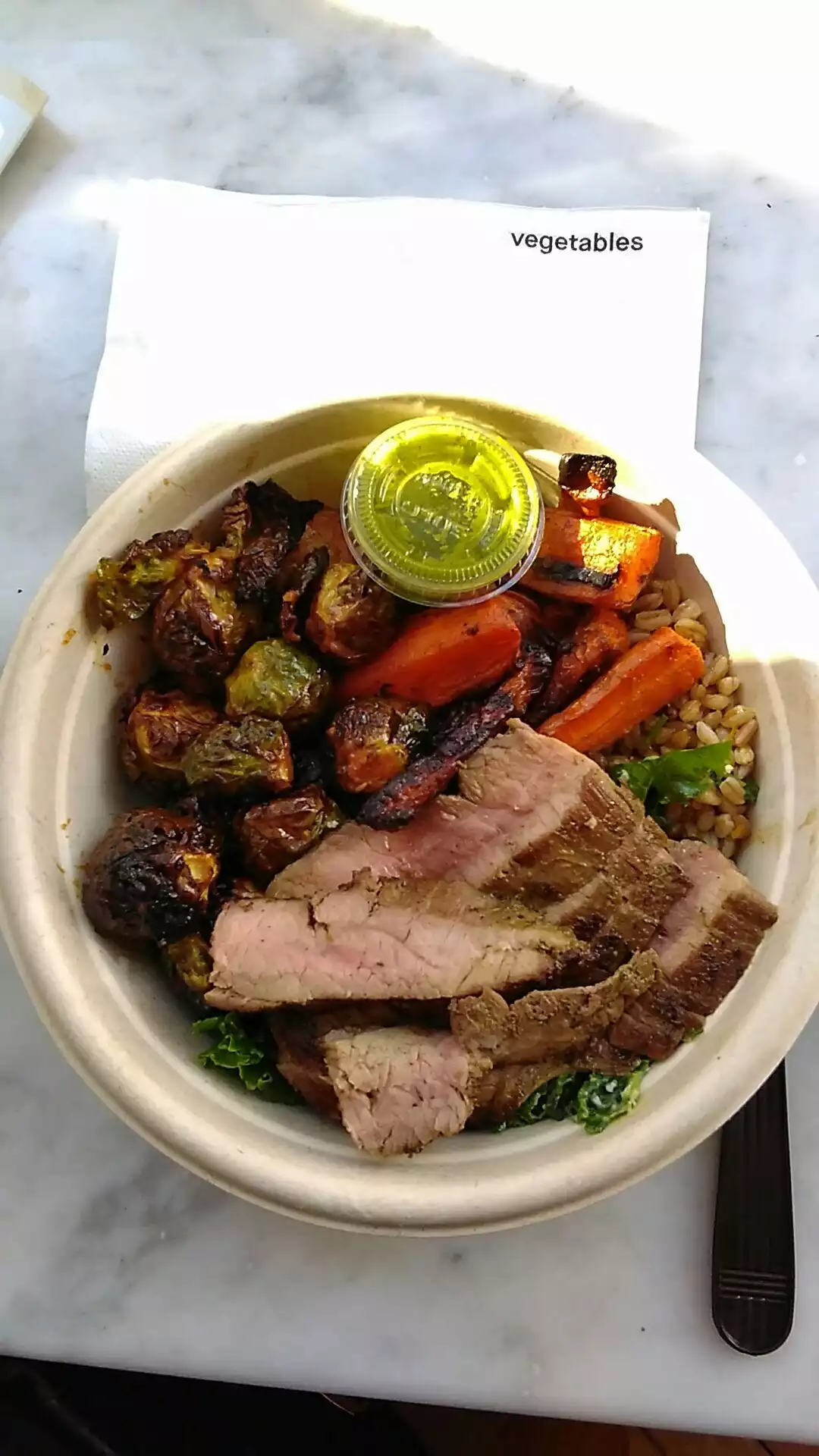 Really interesting concept. Good for you food. Limited assortment. Choose your base (rice, farro, greens), sides, protein. Sort of a healthy In-Out. Really enjoyed the brussel sprouts.