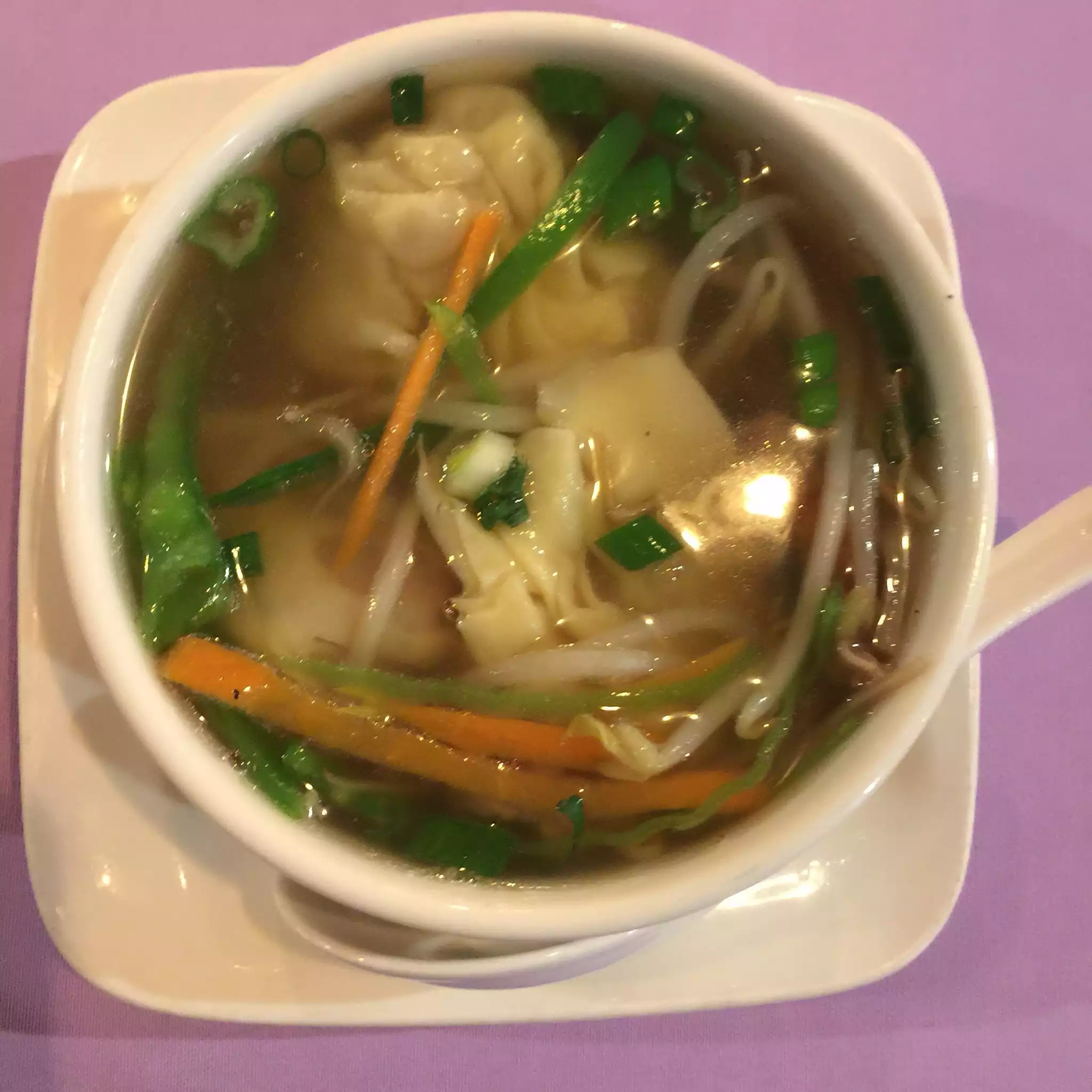 Great quick lunch. Wonton soup spring rolls and dumplings all excellent. Server was good as well Only thing didn’t love was the salt and pepper Shrimp which I requested no shell and received no shell but inauthentic version of what was basically beer battered shrimp. Not sure why they couldn’t use same process and flavoring with no shell. Minor gripe