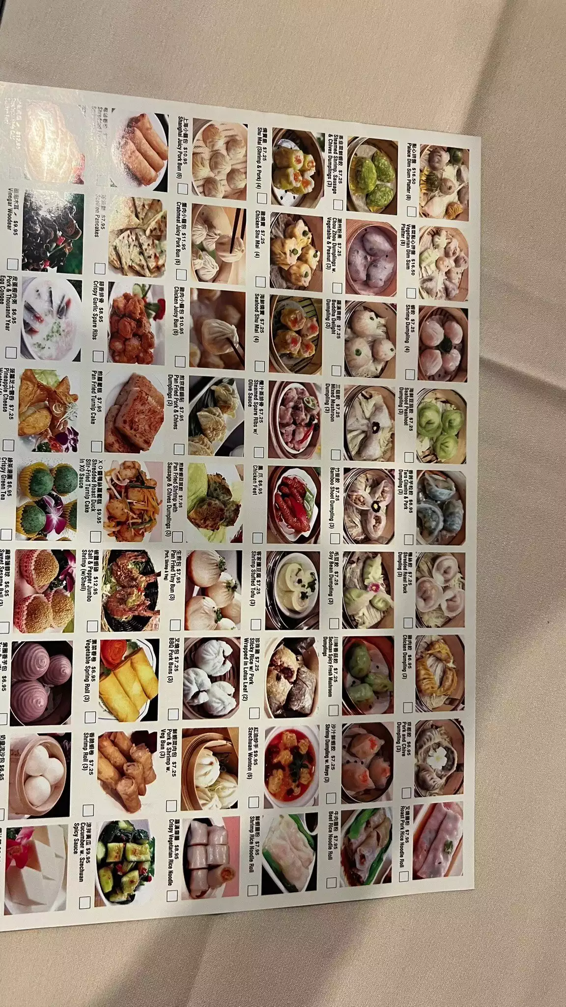 Dim Sum Palace has very good dim sum. This location is more comfortable than the 46th Street one. The dim sum menu has helpful pictures. Wait staff is quite good. Menu offers more than dim sum.