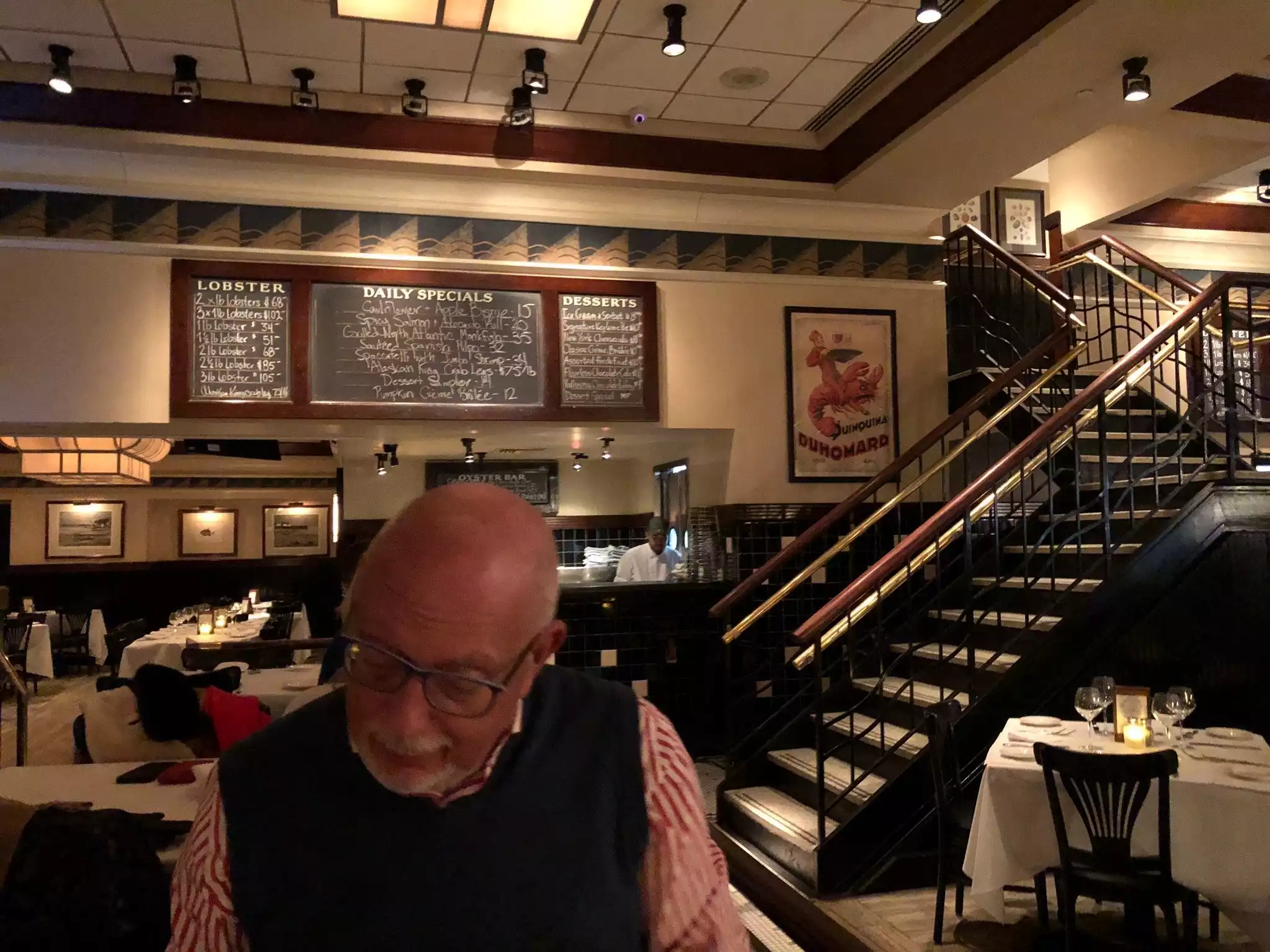 An iconic seafood restaurant, big but quiet at a corner table for lunch on a cold weekday. I made the fatal mistake of ordering their seafood Cobb salad, a lackluster affair of shredded iceberg lettuce, a few flaccid tidbits of lobster and monkfish, one shrimp, and rest (bacon bits, blue cheese, hardboiled eggs, and avocado – mashed on top of an unripe hard chunk, with mayo on the side) laid out in rows on top of the iceberg lettuce. All served on a flat oval plate, so difficult to mix together. Cannot compare with the sparkling fresh Cobb salad, lightly dressed, that I had at Le Pain Quotidian at Union Station in D.C. at half the price. Others at the table fared better – real honest to gosh fish and chips (fresh cod in a proper batter), grilled fish, parsnip soup, all of which looked much better than my sorry lot. The fried oyster appetizer was good, as imagine their oysters on the half shell must be too. I would give this place another despite my disappointing choice this time. As for disability access: there is a revolving door, not clearly marked, and an emergency door that could accommodate those with mobility issues, wheelchairs, etc. Best to check with the restaurant about disability access, steps, etc.