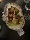 Although we booked a table in advance when we arrived we were looked at as if we had 2 heads each for some reason. When our table was ready we were shown to a table in a high traffic area. We saw an open table in a quieter part of the restaurant and we were able to see there was no reserve sign on it but when we asked if we could sit there instead, all we got was a ‘’no’’. We started with the beef carpaccio and octopus as a starter. The octopus was really good our daughter wanted more so we ordered a second helping. The beef carpaccio was okay. Wish it has some Parmesan flakes over it and a bit seasoning as it was a bit bland. I had the rosemary chicken which was really good. A nice flavor on the well cooked skin of the chicken. Wife had that Branzini which she thoroughly enjoyed too and our daughter had a salad. The octopus was really good and that is what made the meal for us. Just wish the staff can be a bit more less ‘snooty’ an be more welcoming to guests.
