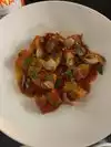 The spaghetti was dry and had been pre-cooked as it had a stiff straw-like texture , not edible and no proper attempt made of the requested sauce.. very poor! The side of potatoes had the “pre-cooked texture and quality. The salmon was fine. Value for money was poor overall.