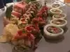 We ordered the sashimi deluxe with rice, the mango salmon roll and a salmon avocado roll. Everything was delicious. The service was great and this is a byob restaurant.