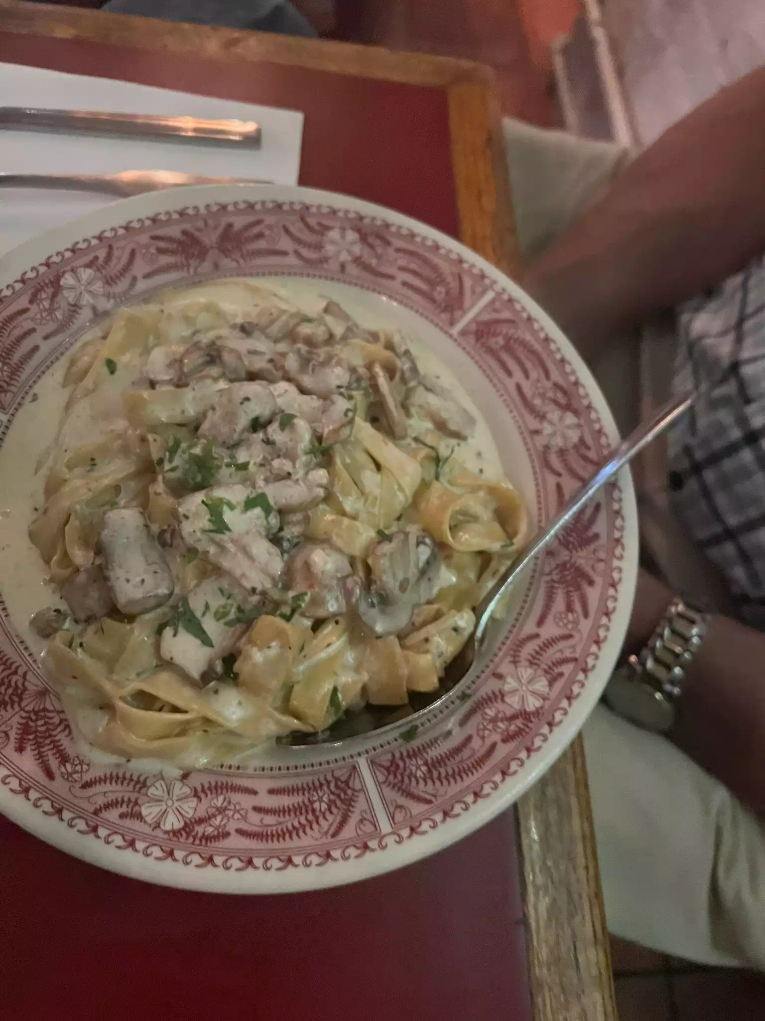 Nice restaurant, we had lasagna, French chicken and tiramisu for dessert. Everything was quite bland, lacked seasonings