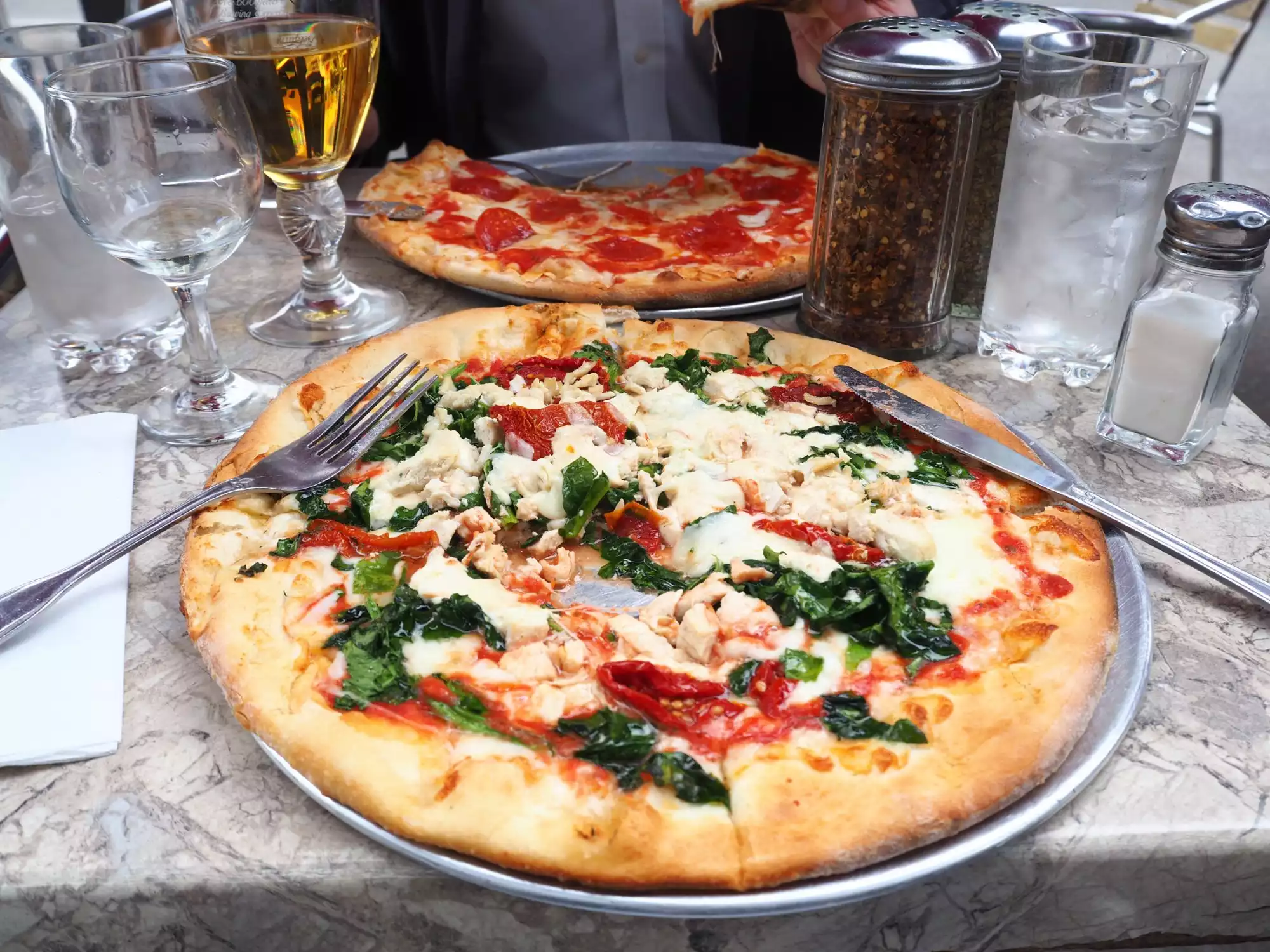 We came across this restaurant for lunch after walking the High Line. It was a lovely sunny day and the place was very busy. We managed to grab a table outside and got served pretty quickly though the service seemed a bit frantic. We had a margharita pizza to share and it was delicious! Freshly made and stone cooked I would highly recommend. With a glass of wine, 2 beers and a coke, the bill including tip came to around $45 which I felt was reasonable. We would definitely return.
