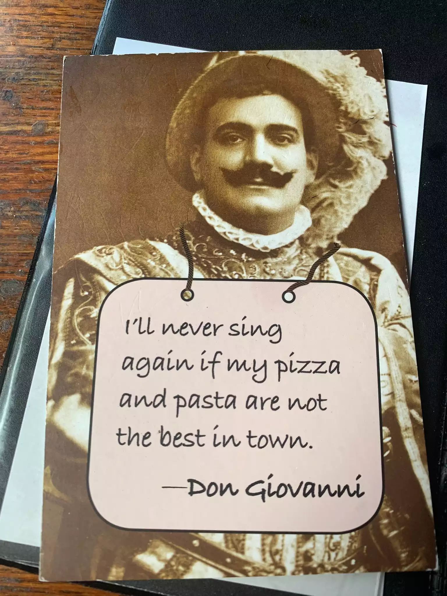 This looks like a great Italian restaurant, but stay away! First, the positive: Fabulous service from our waiter and the rest of the staff. And the linguini was perfectly cooked. And the interior is nice. And they have outdoor seating. But - the Linguini Vongole was just atrocious! There was a pile of something disgusting in the middle that my wife suggested might be clams from a bag? Awful. My 8-year old son, who loves clams and always tells me not to be so critical,basis he couldn't eat it. Neither could I. On the card we received at the end: "Don Giovanni says: If my pasta and pizza is not the best in the city, I will stop singing. " Well Don, time to clam up! Maybe the pizza is edible.