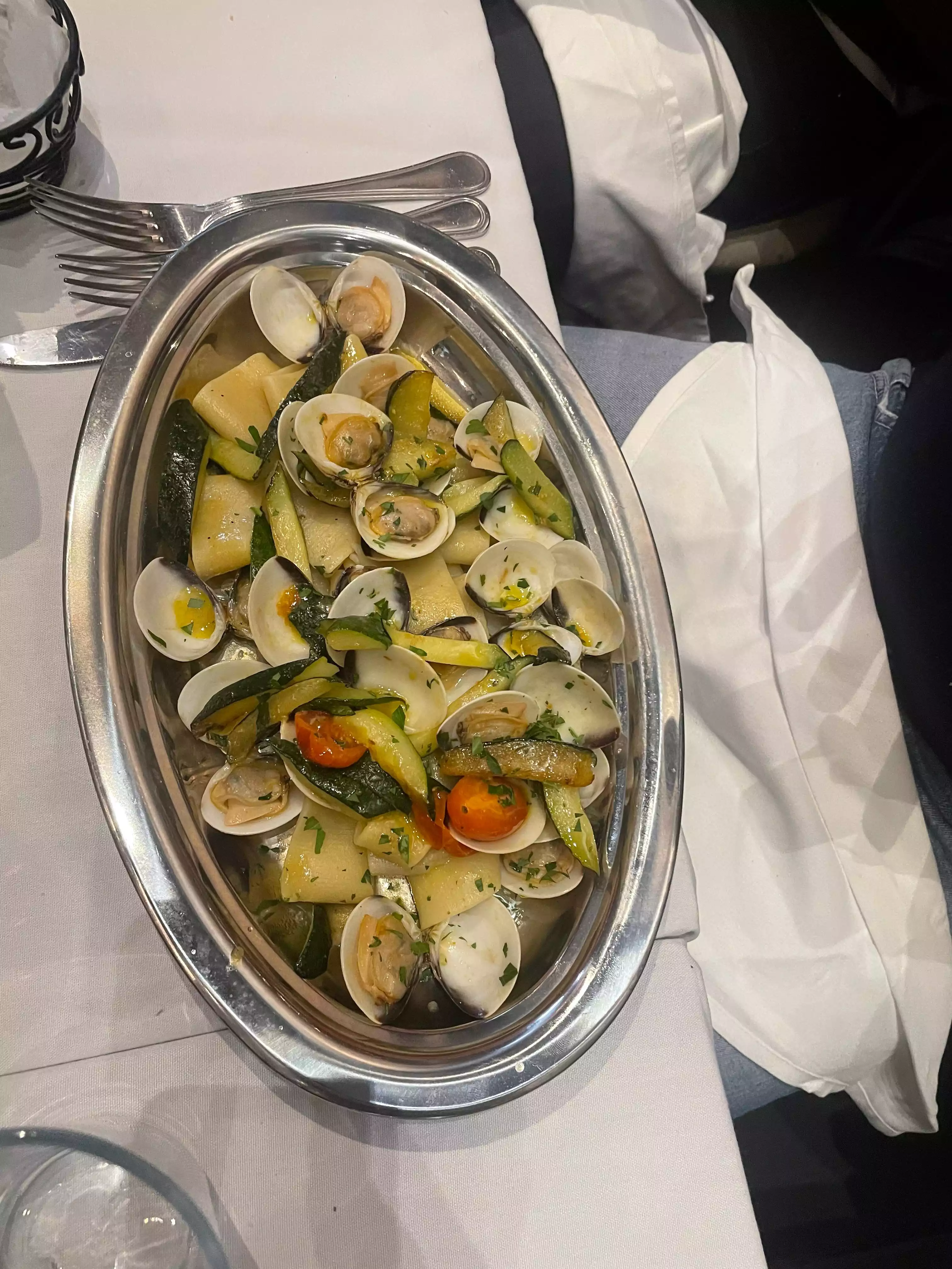 Have a nice dinner. Nothing that exciting. Good pizza, pasta mo. I took linguine with clams tasted only like wine and I found several times pieces of broken clams in the pasta.