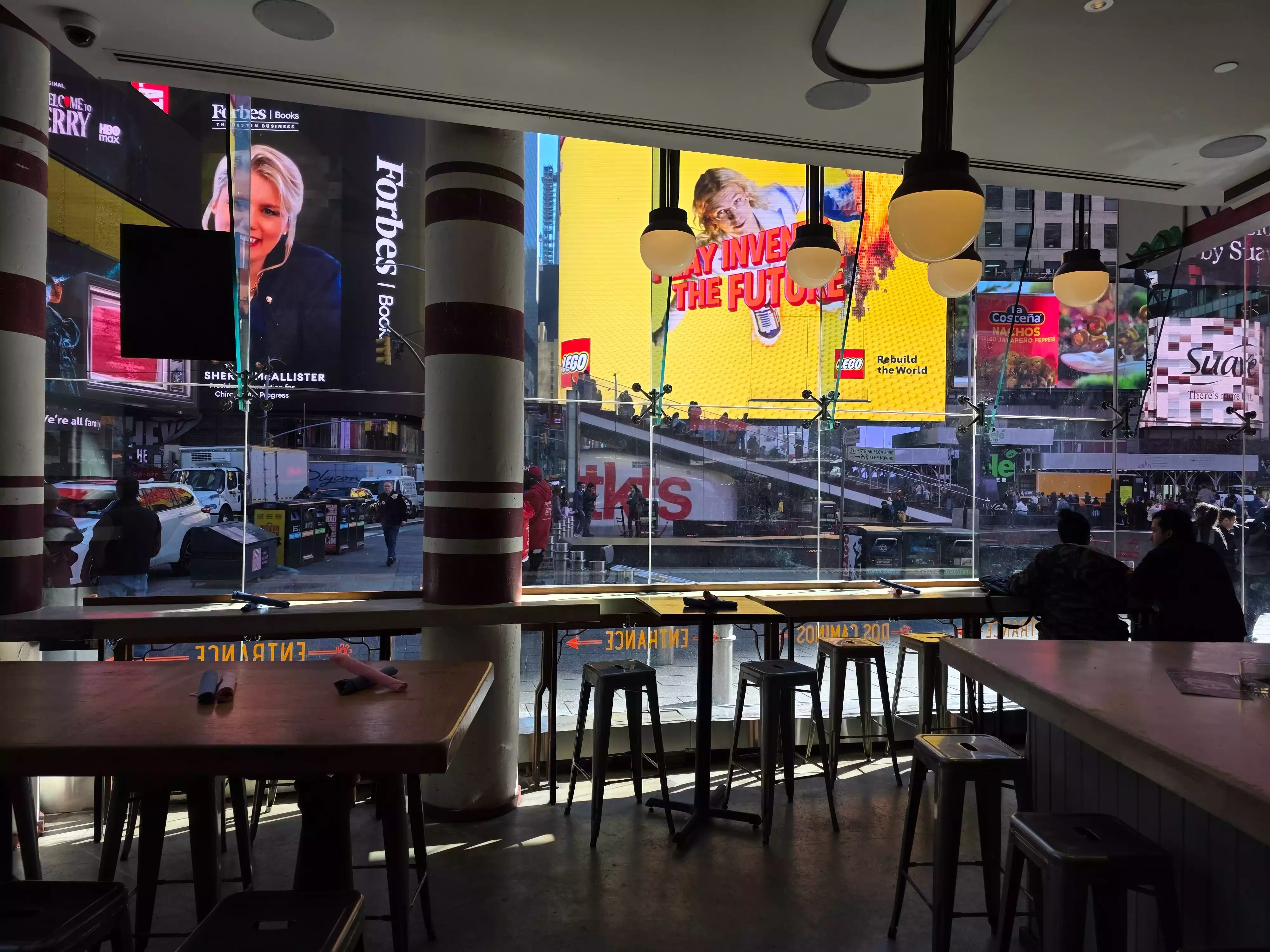The quality of food was excellent, but the service was even better with Jamie. We would recommend going to the bar area and asking for Jamie. The view as you’re eating is of Times Square highly interesting and entertaining.