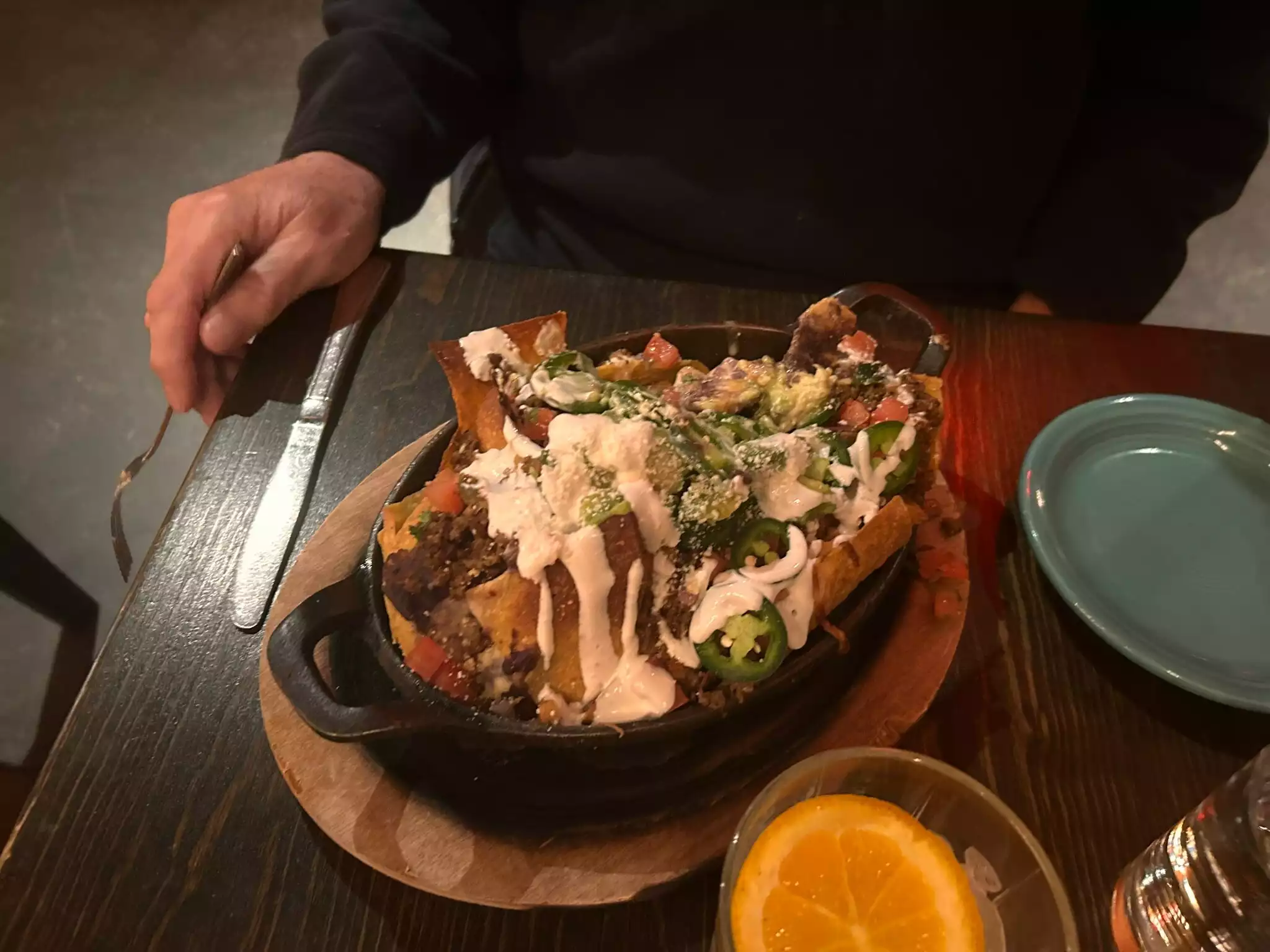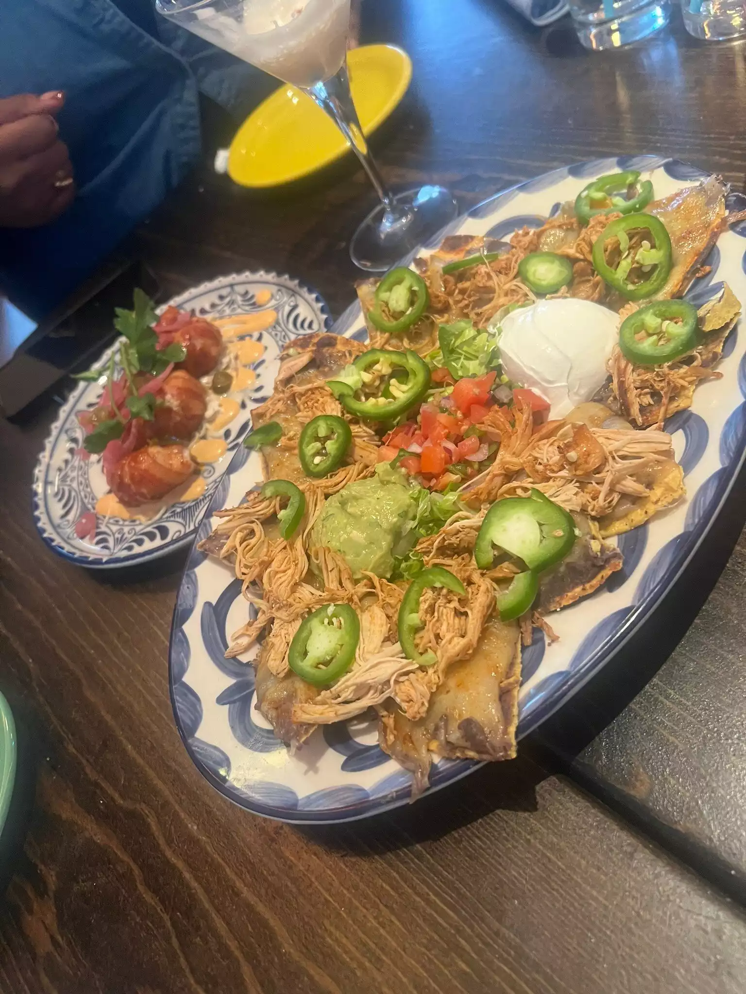 Super nice Mexican restaurant, well decorated as in Mexico. Plate of Nachos ($22) was big for both of us so we just had a great big and hearty Tortilla meal soup with chicken in it ($16)