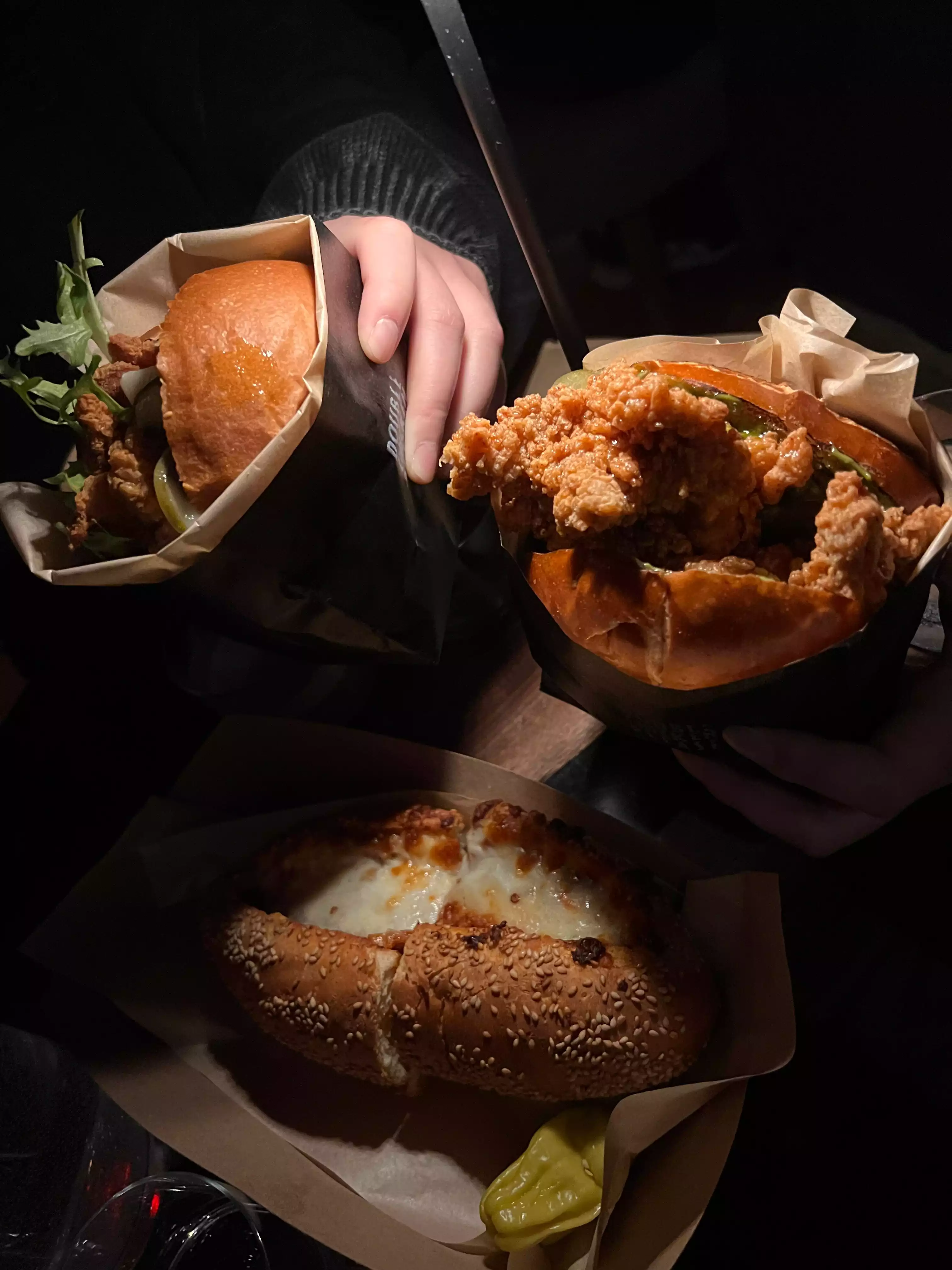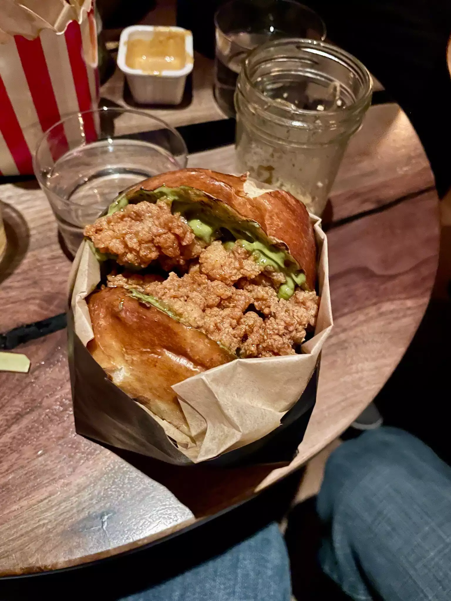 We queued for an hour and a half to try the chicken burger, an alternative to the classic one which seemed tempting following the reviews on the web. It's actually nothing more than a burger filled with ultra-fried, greasy chicken wings that are difficult to finish and digest. We wanted a beer but we couldn't get anything else to drink other than cocktails that we chose to our taste, good but the size of the cocktail was really small. Total price for two burgers, popcorn chicken and two cocktails $96 (€88)