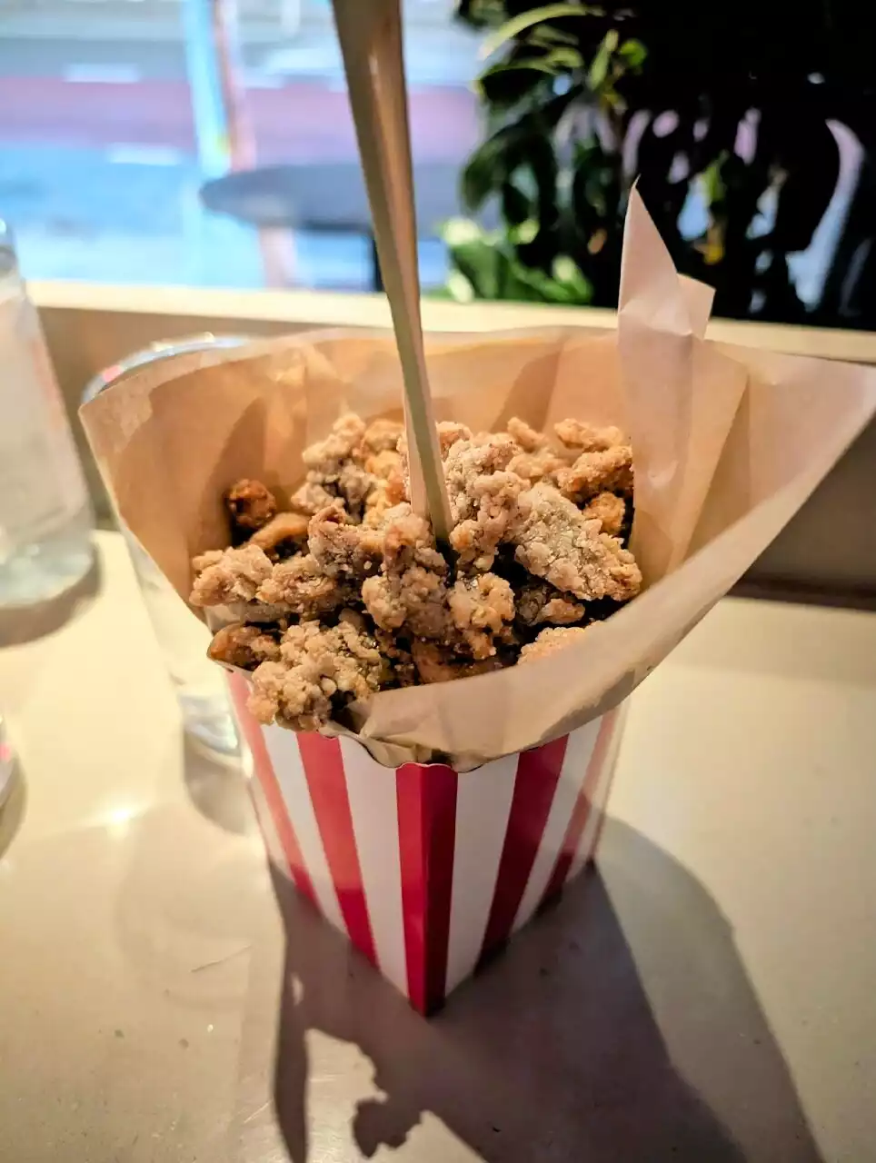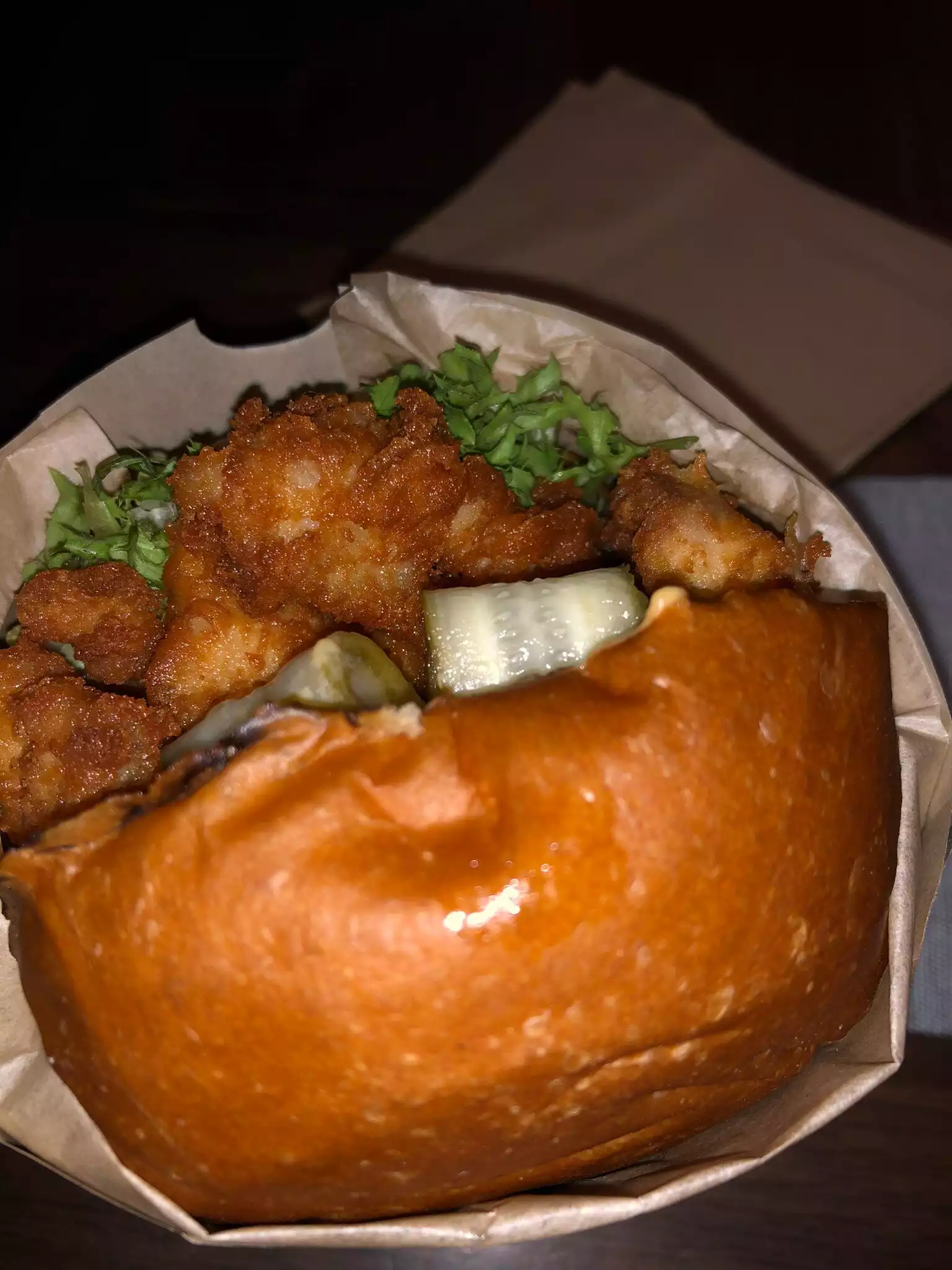 The space is dark and not very comfortable and if you try to walk in, you can expect a wait time of a few hours but it's all worth it - they have some of the most tasty chicken in town. Great spices and a nice crisp batter. The chicken is tender and the bread used for the sandwich is soft and buttery. The popcorn chicken and hot honey chicken sandwich are the things to order