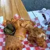 Texas size portions- a bit much, but definitely yummy. Spicy margarita with pineapple juice-not grapefruit was delicious along with fried chicken sandwich. We went for lunch. A bit noisy inside and was too hot for outside on the day we went.