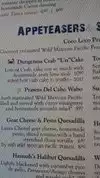 Had the caesar salad and lobster chowder, both were very good but a bit overpriced for the size. Excellent sour dough bread. Very competent server who seemed to know the menu and sourcing quite well.
