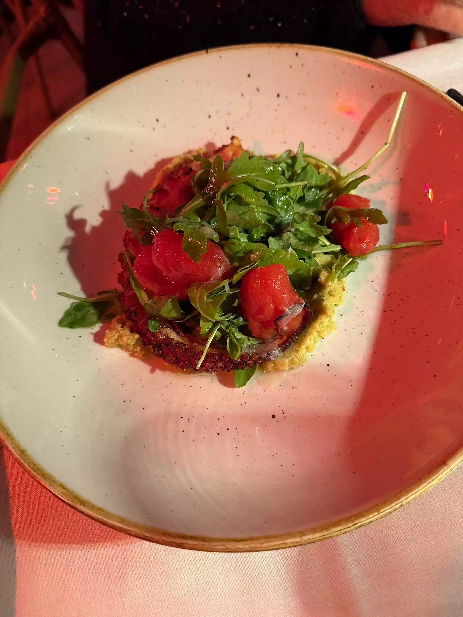 Last night dinner at Duomo51 was amazing! The atmosphere was warm and welcoming, and the service was excellent. For appetizers, we had the grilled calamari and the avocado artichoke salad—both were fresh and tasty. For my main course, I tried the pistachio and mushroom fusilli, which was delicious. We loved everything we ordered! The view is fantastic—you can see the Christmas tree and St. Patrick’s Cathedral, perfect for taking beautiful pictures. Definitely a great spot for dinner!