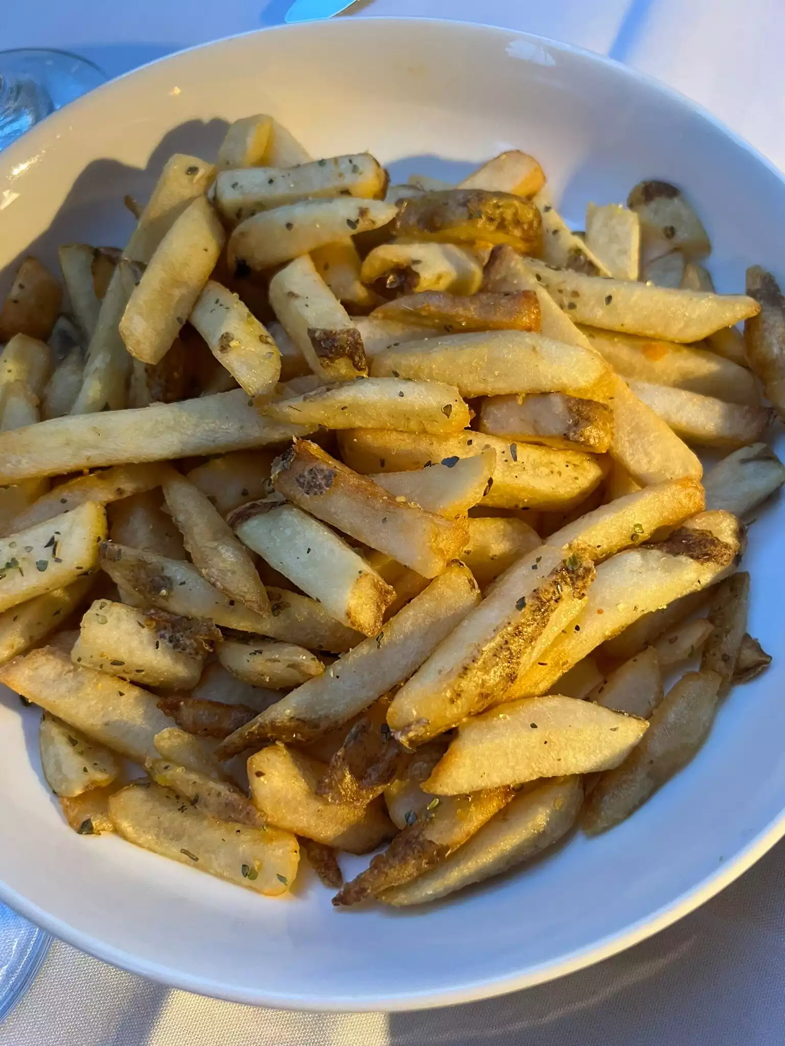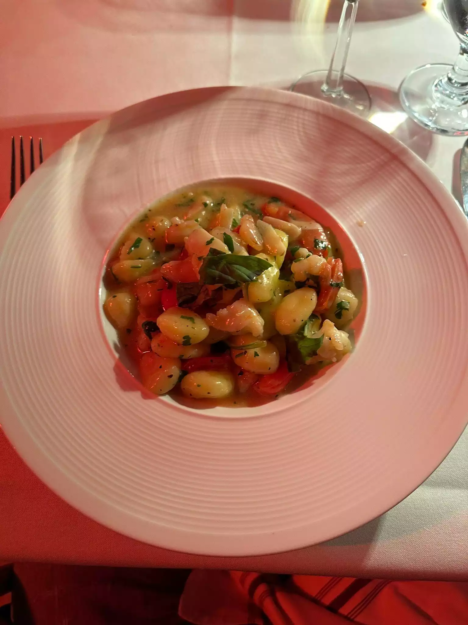 My ribeye was excellent and a perfect medium cook. Nice portion of asparagus but at an additional price. Should come with, at least, one side dish for the amount I paid for the steak. My wife loved the gnocchi/shrimp dinner, even as it was her first time eating gnocchi’s with a garlic sauce.