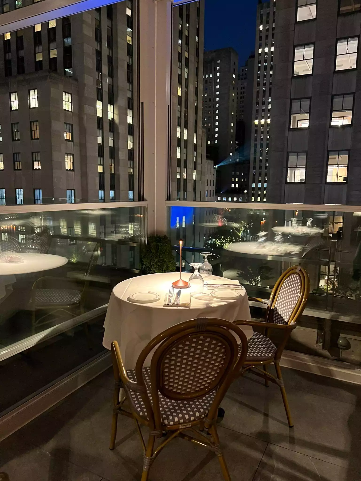 We were looking forward to a romantic dinner in Manhattan to celebrate our anniversary with a nice view of the holiday lights and St Patrick’s Cathedral on a Saturday night. The food, service and ambiance could have been nice but instead we were extremely disappointed. We asked for a special table by the windows with a view but got a wobbly round table by the door where every tourist had to go out on the rooftop to snap skyline photos in the 30 degree blustery weather. Needless to say it was cold and disruptive to our already lackluster food and awful service. We both ordered pasta and the presentation of the entrees were sloppier to us than how we serve our two Labradors dinner at home. The ravioli entrees for $30 each consisted of six ravioli with sauce in worn shallow plastic bowls with none of the repeatedly promised bread with our entrees. This meal was so disappointing we could not wait to leave. Recommend skipping this place. Try Limani nearby for a beautiful meal.