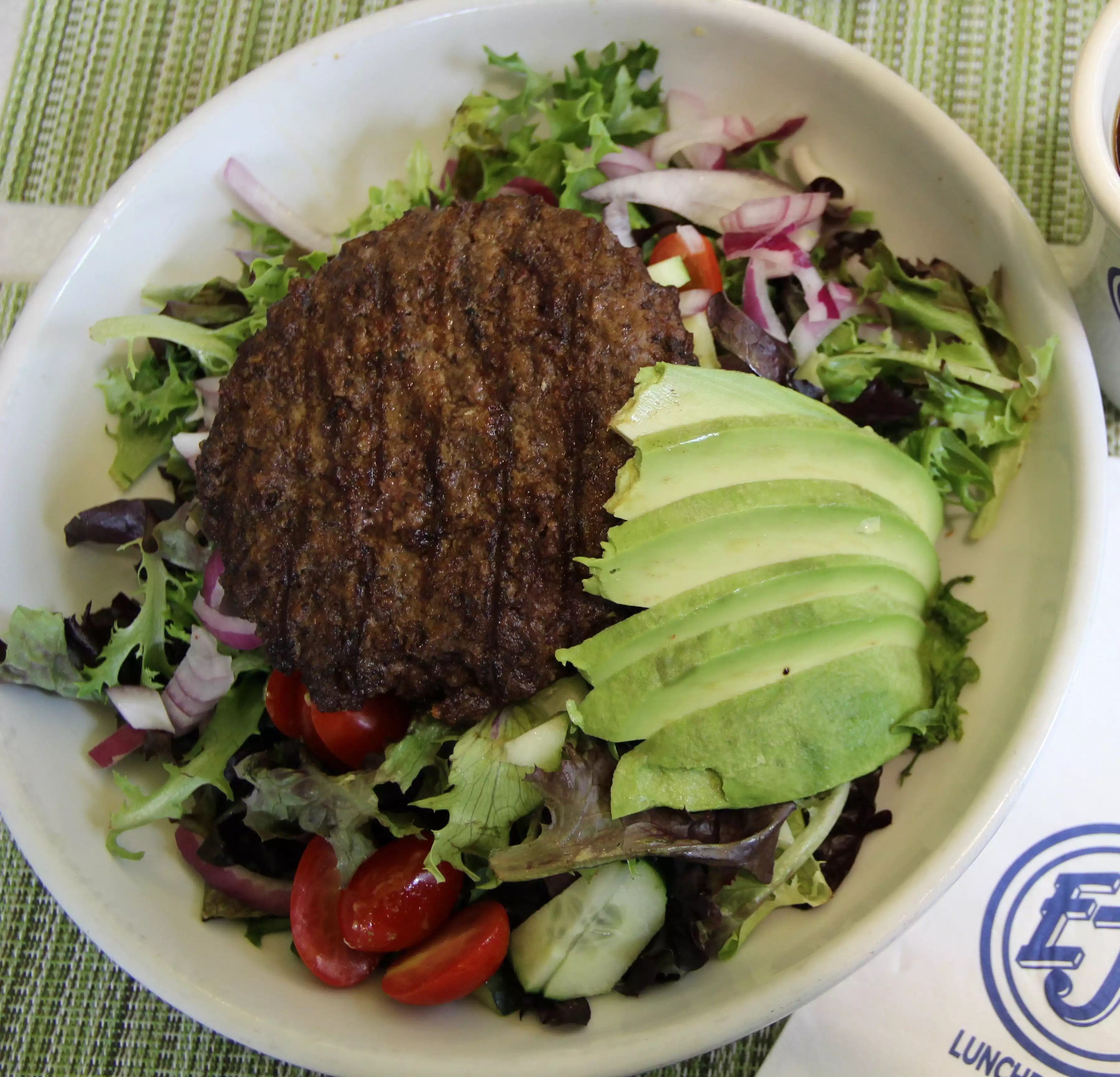 Hopefully, EJ’s will continue to thrive. True diners have been disappearing left and right. Three of us went for dinner @ 7pm on a Monday. We were quickly seated in a comfy booth. We ordered three different styles of salad and one knish. The salads were the usual big portions and were served as we requested sans certain ingredients. The knish wasn’t anything special but it satisfied the craving. We were allowed to sit and talk well past the completion of our meal which was a pleasant surprise.