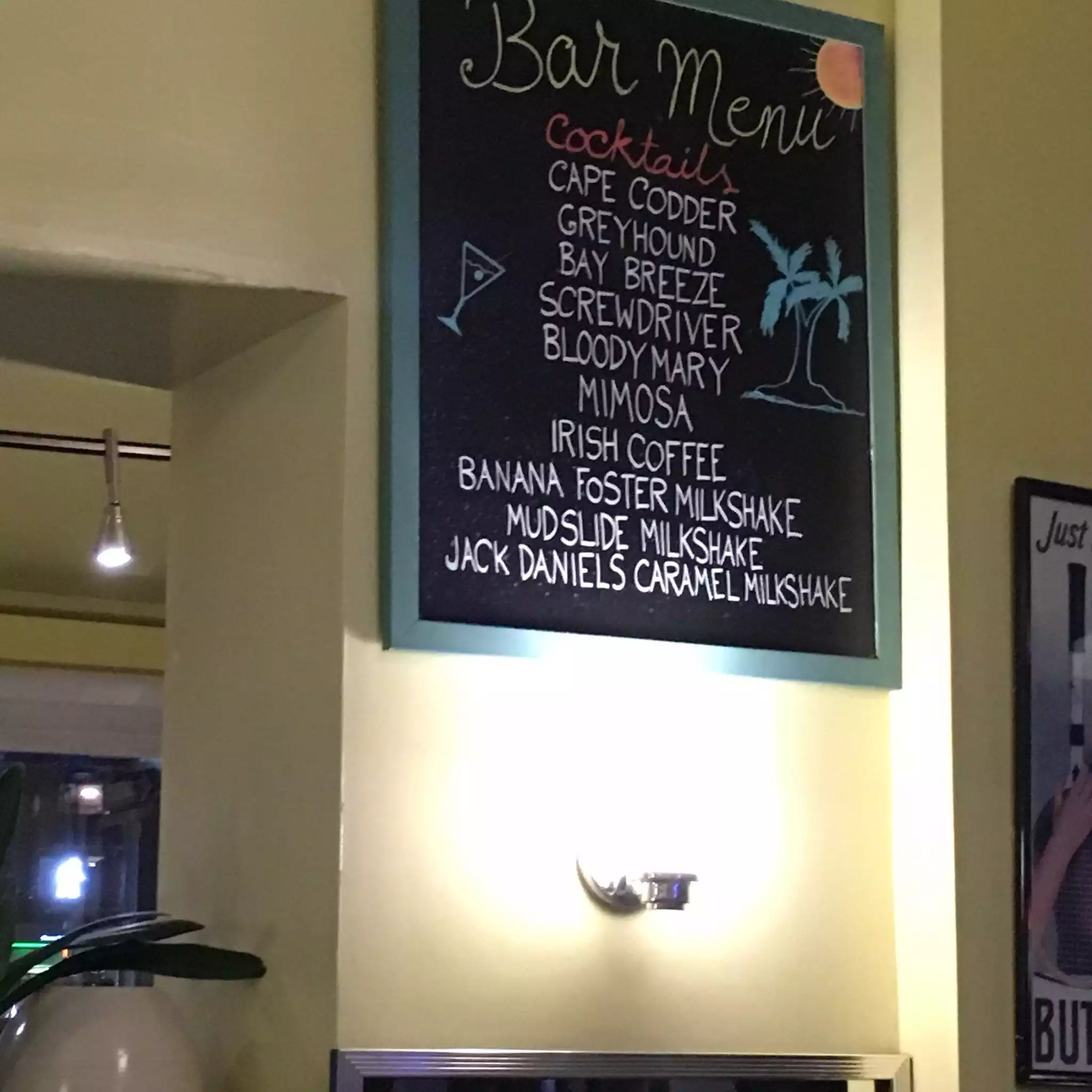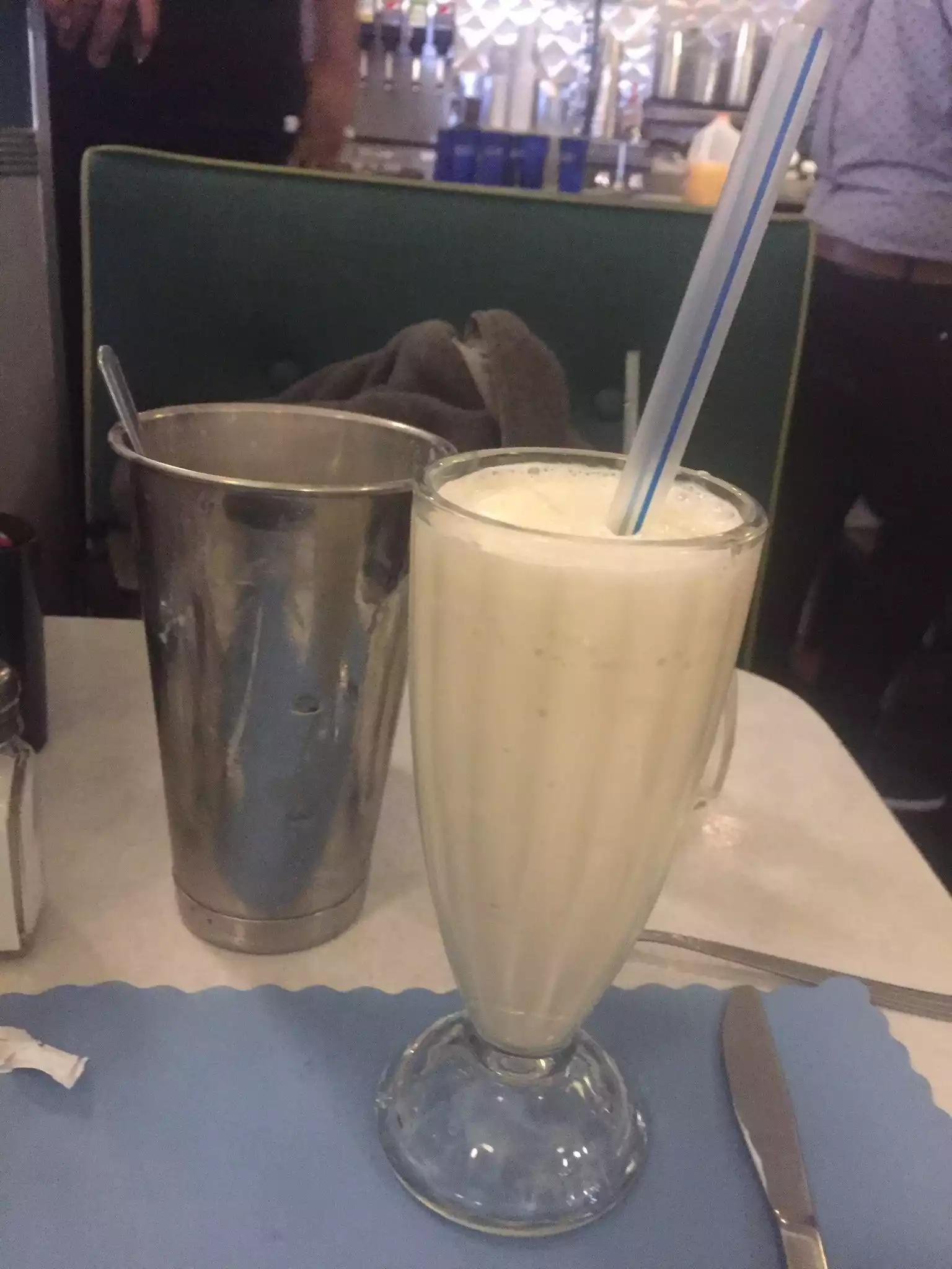 This is very good place at any time during the day or night. Their bar has less liquor than the headquarters of AA. The grilled sandwiches are outstanding. Now the kicker. Chocolate milk is milk with chocolate syrup, a milk shake add ice cream and malted add malt power to the milk shake. They charge 1$ to add malt which is about a 1000 increase in their actual cost. But the kicker was the malted came as thin as if it were plain chocolate milk, no bulk no enhanced taste. In addition, the genius who made my malted milk placed it in a warm glass. Disaster
