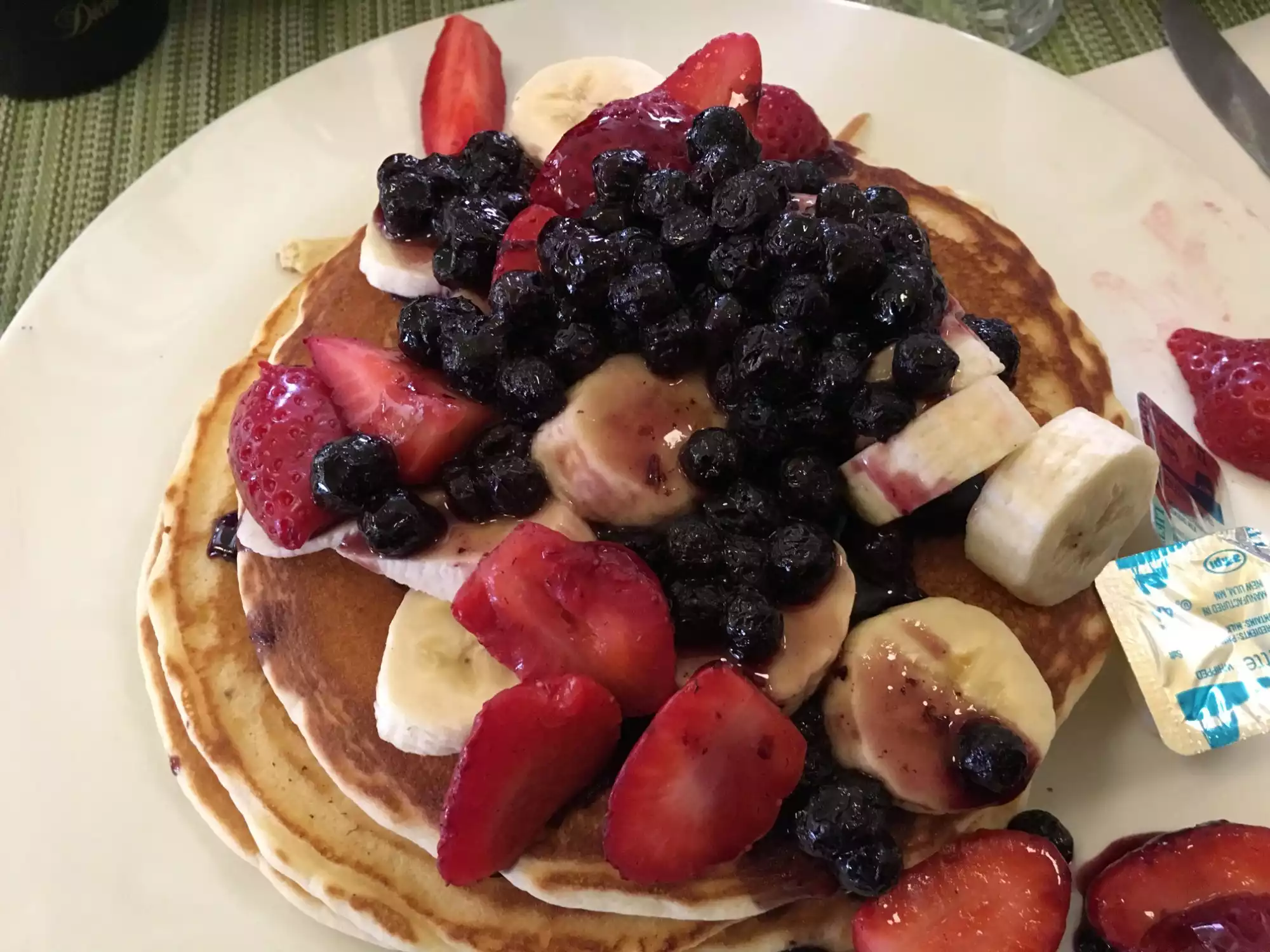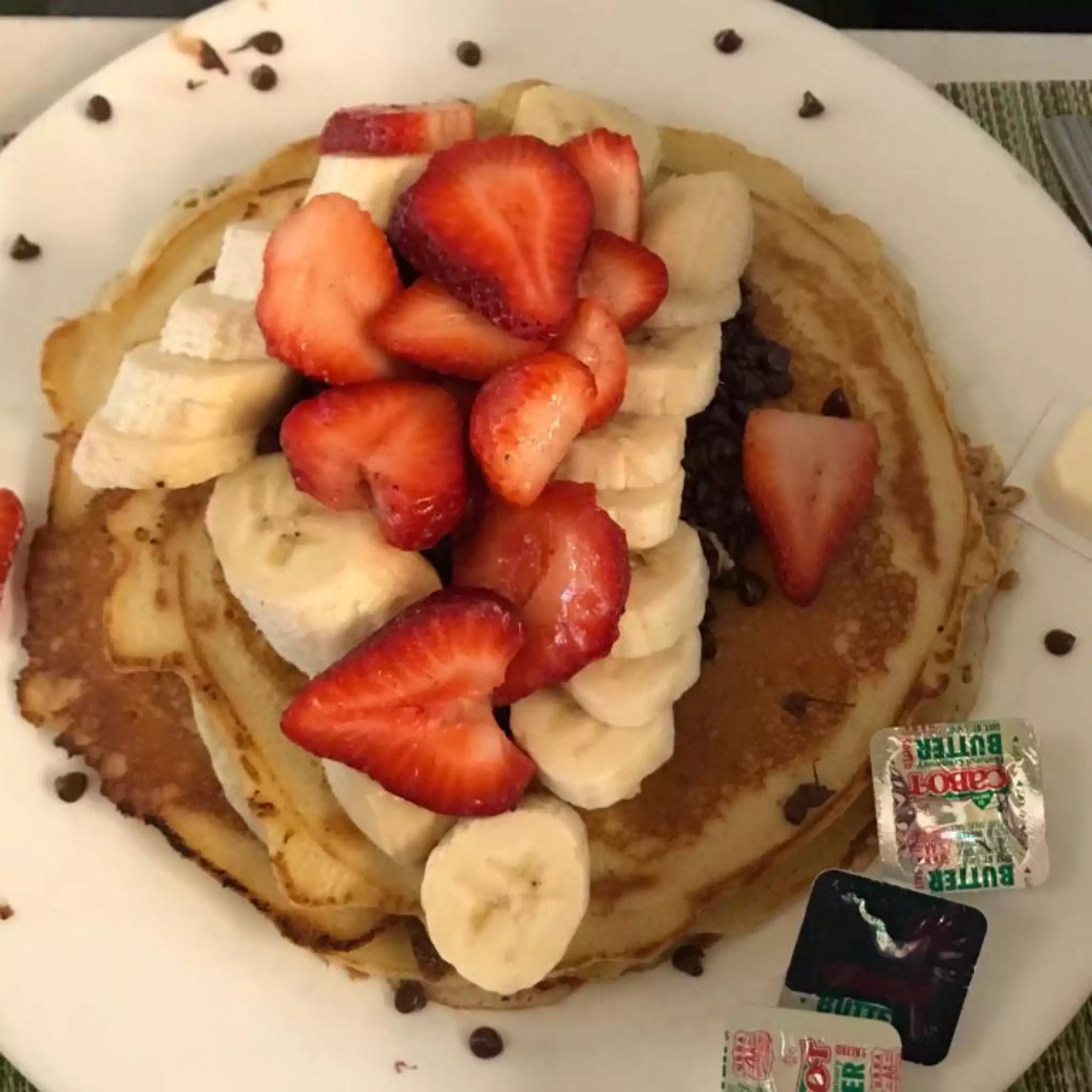 What I expected from a high calorie American breakfast. I had waffles with choc chips and bacon.. I really enjoyed it and kept me full till dinner!! Also had a strawberry milkshake with real strawberrys in which was lovely and you got loads of it!!