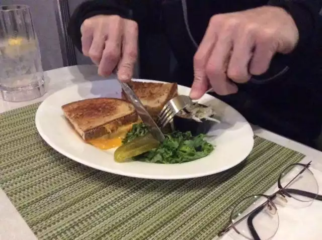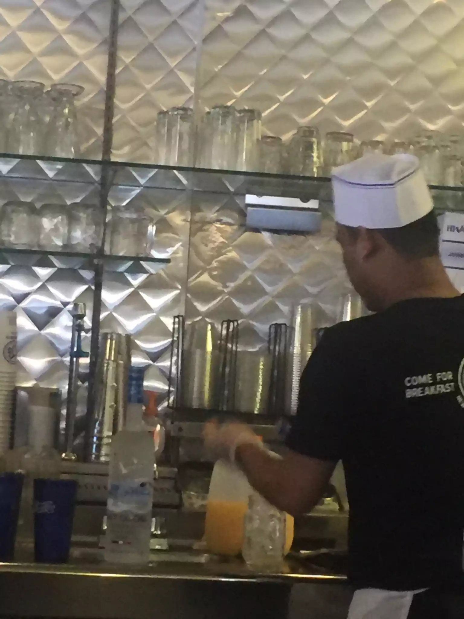 Good launchenette, quite American style both in the menu and in the furnishings Sufficient quality food, generous portions. Overall sufficient but nothing extraordinary Unclean glasses of water Helpful staff