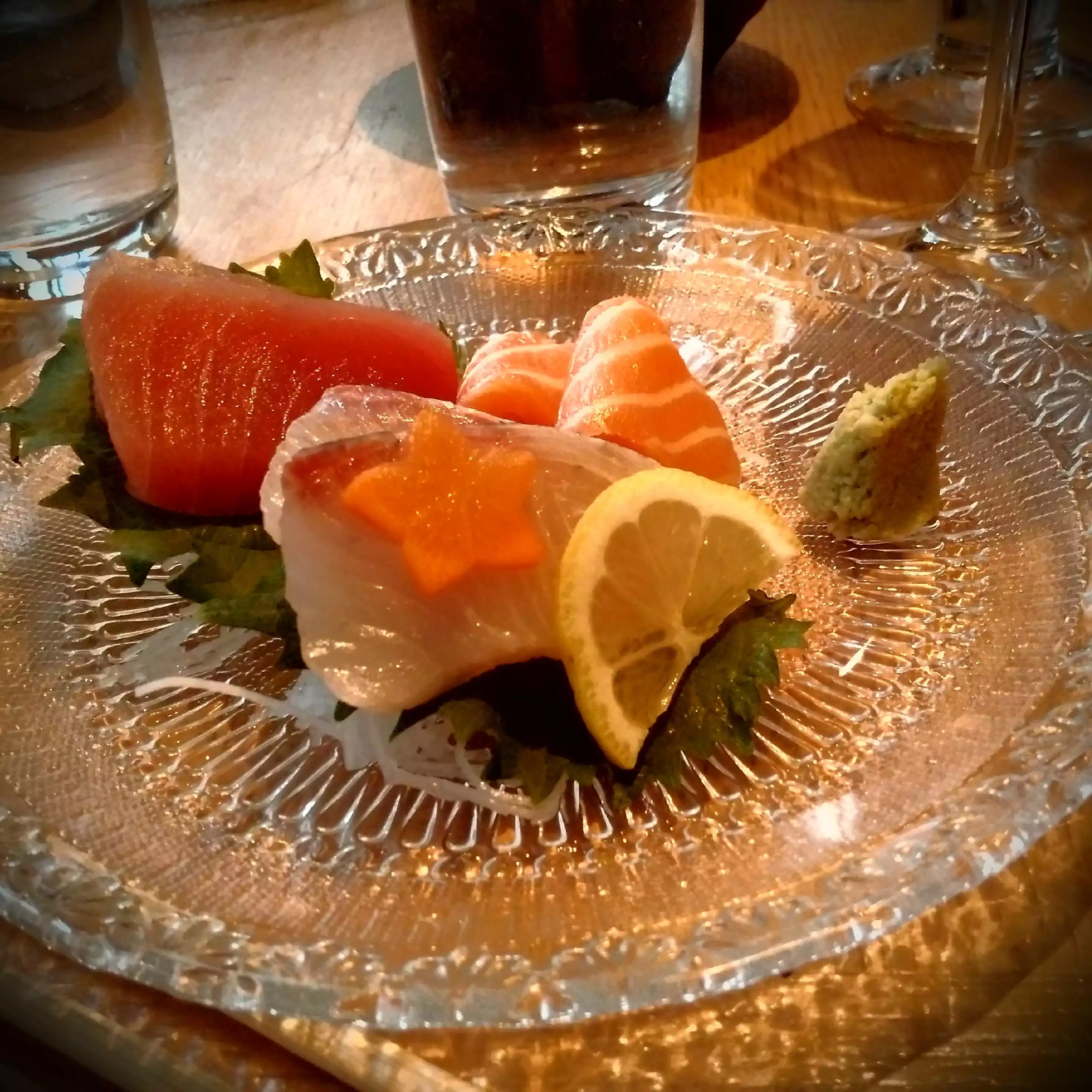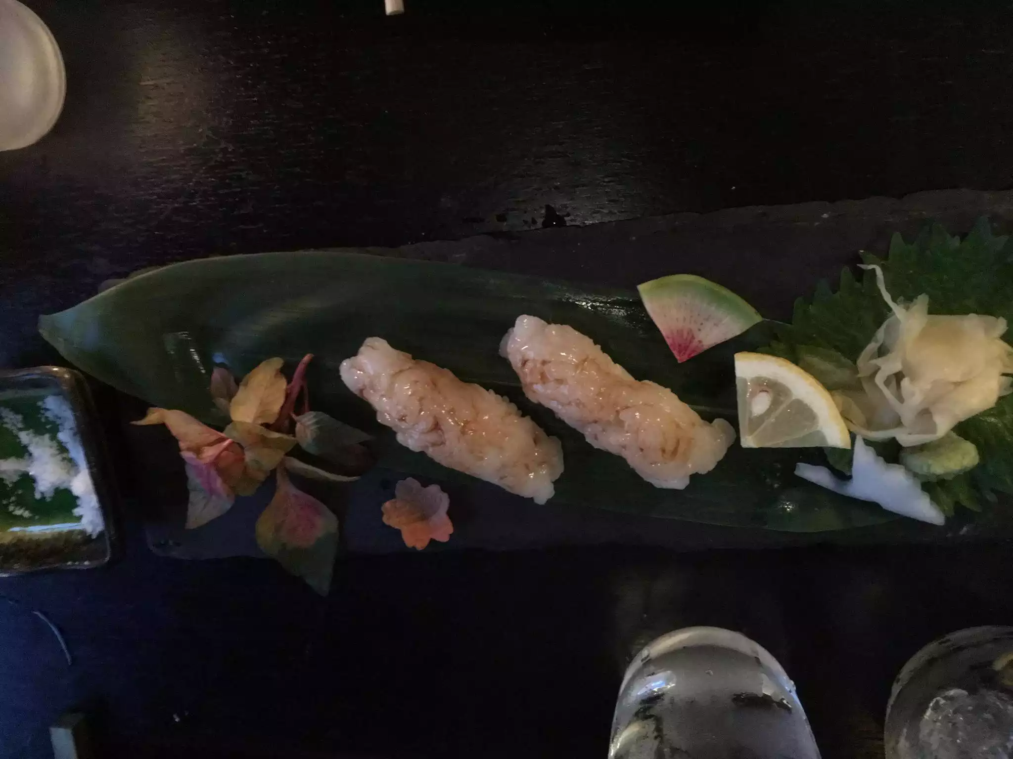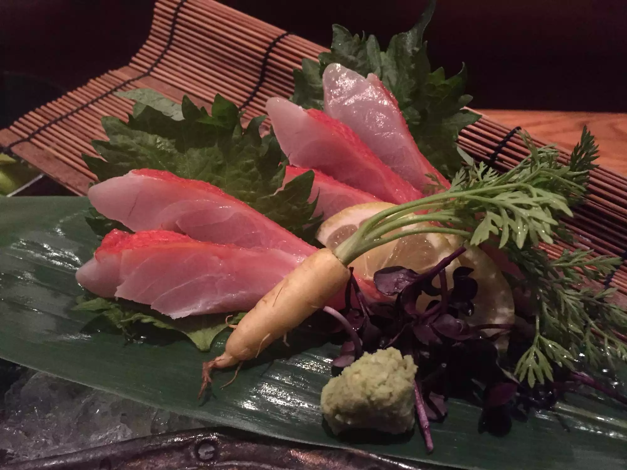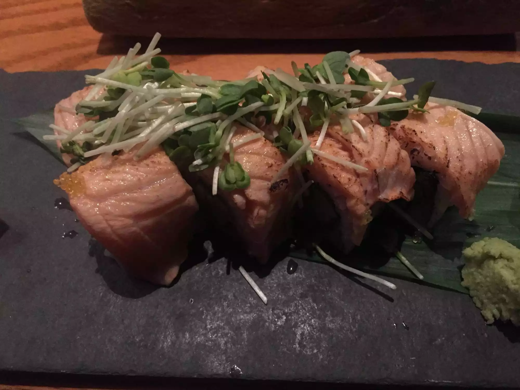 We were having a later dinner on a weeknight. We ordered a variety of rolls, a salad and sashimi. I tasted a bit of it all. Mind you, this is supposed to be an unusually good Michelin rated restaurant. I was shocked at the blandness of the greens and the mediocrity of the fish. For the price, and overall, it was a huge disappointment.