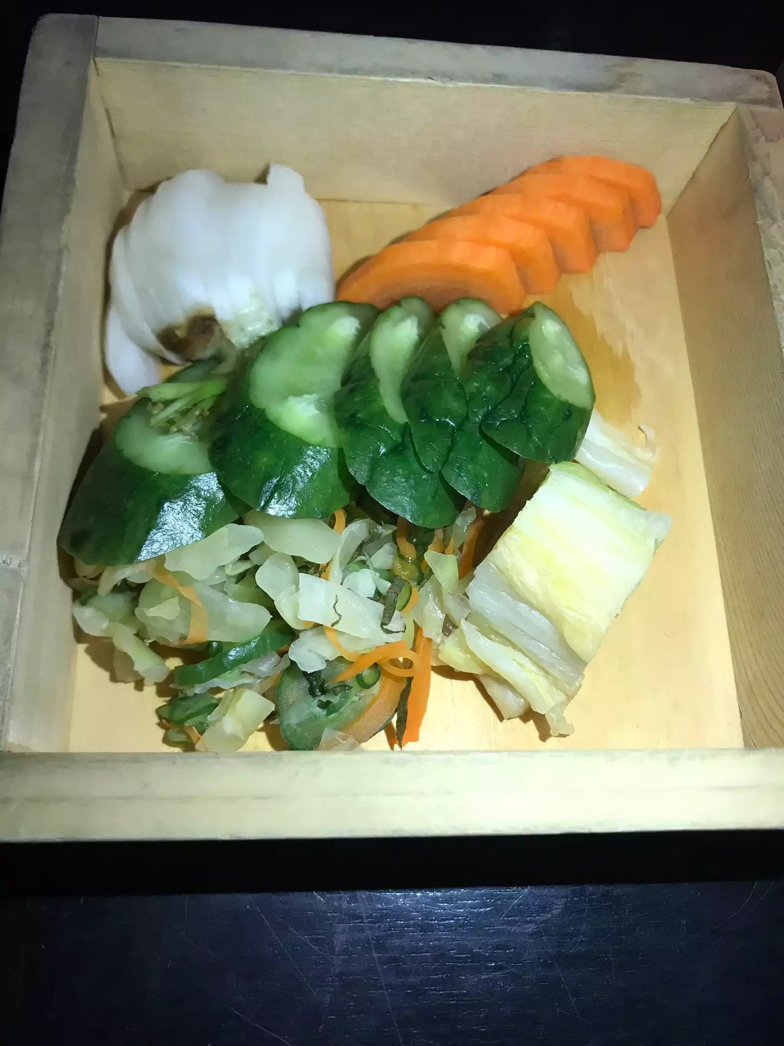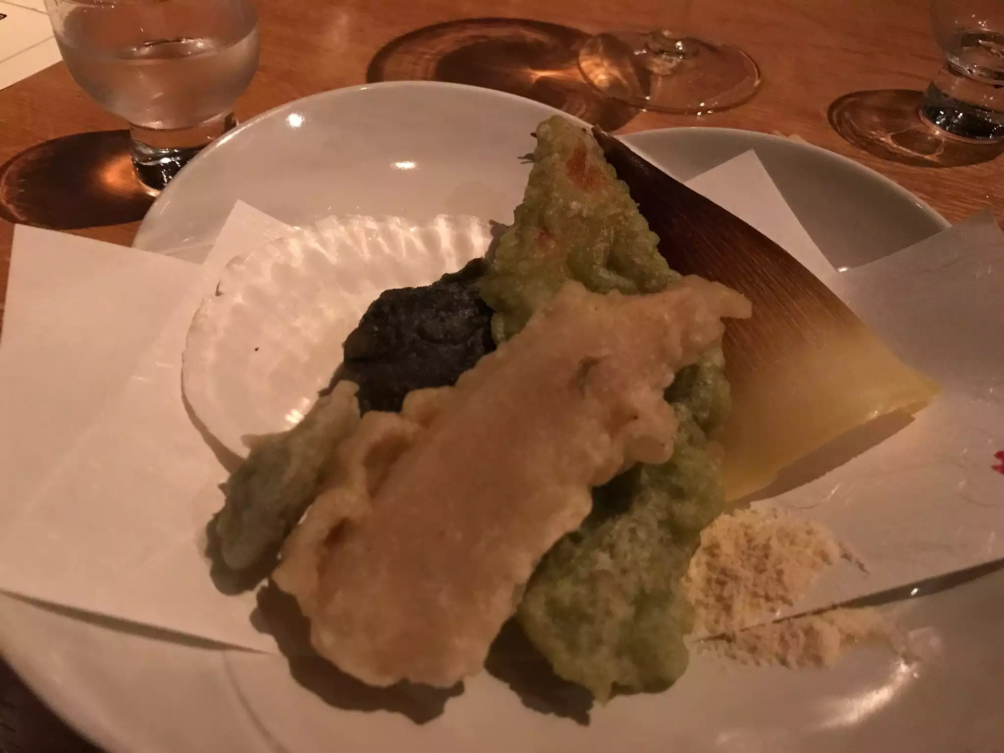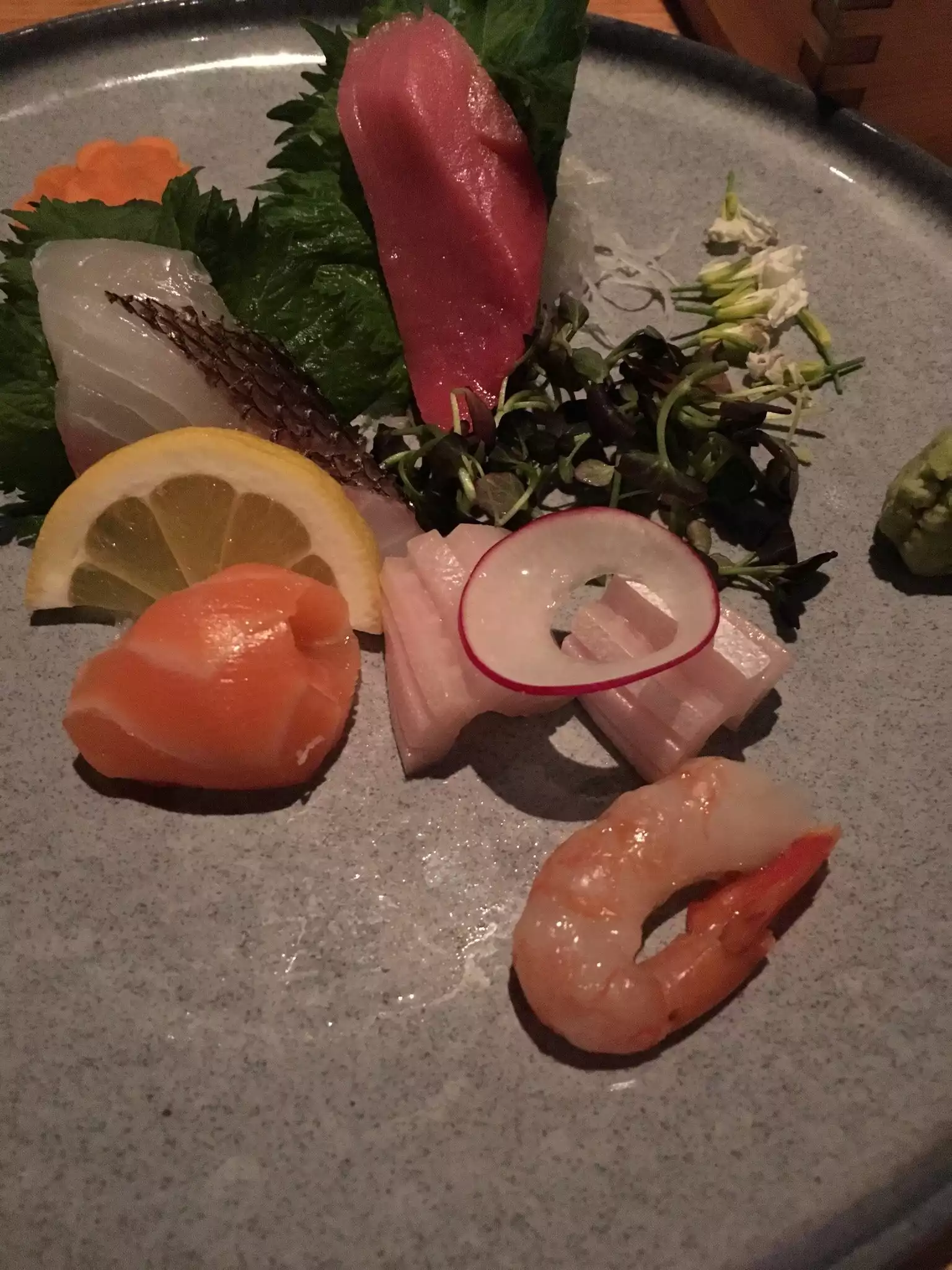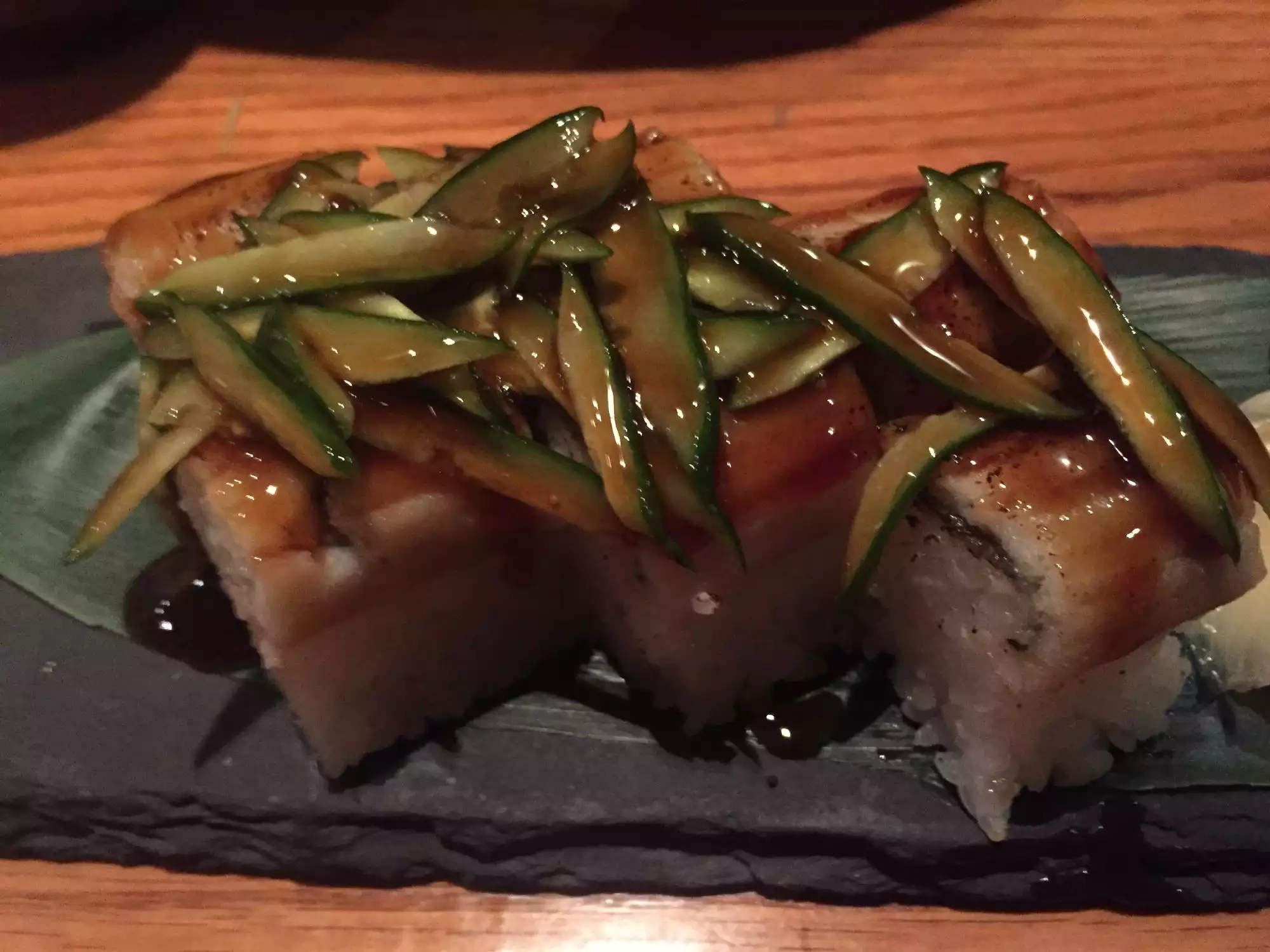 We were having a later dinner on a weeknight. We ordered a variety of rolls, a salad and sashimi. I tasted a bit of it all. Mind you, this is supposed to be an unusually good Michelin rated restaurant. I was shocked at the blandness of the greens and the mediocrity of the fish. For the price, and overall, it was a huge disappointment.