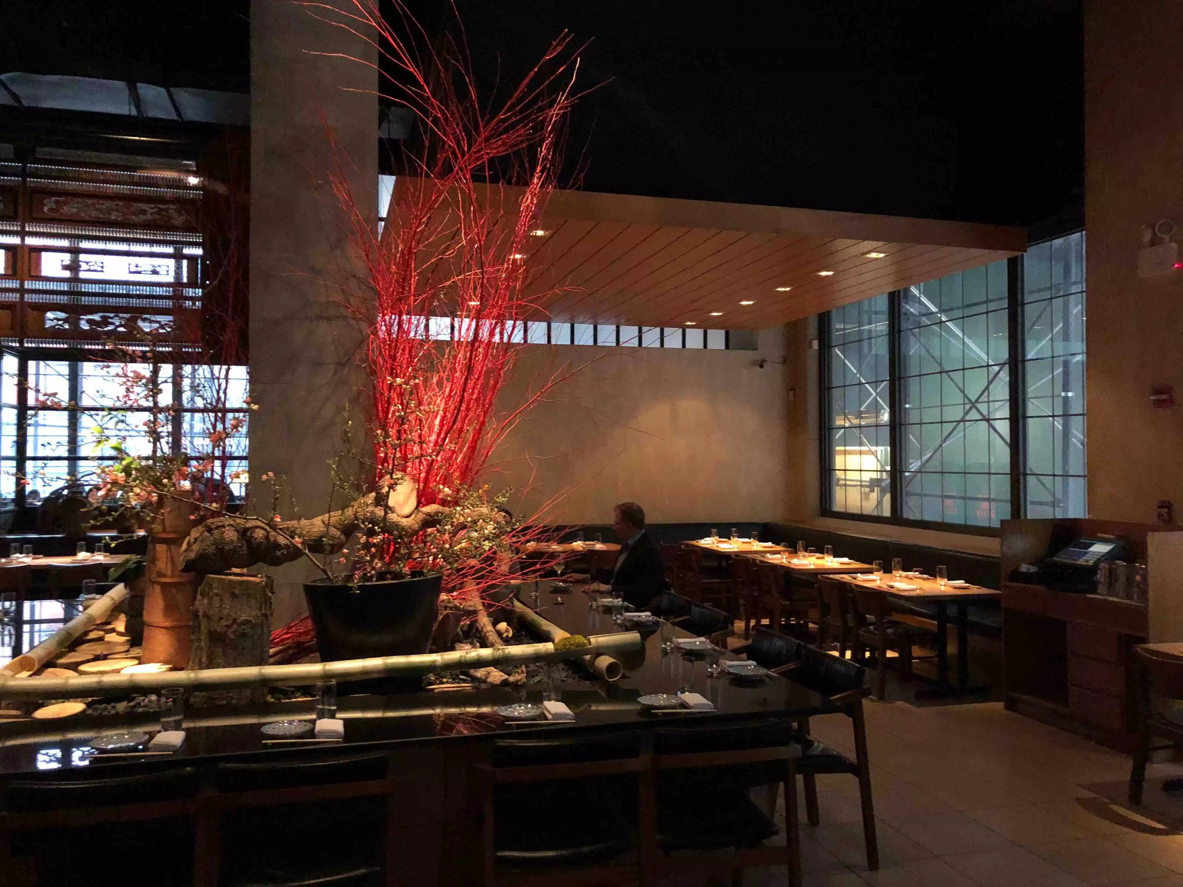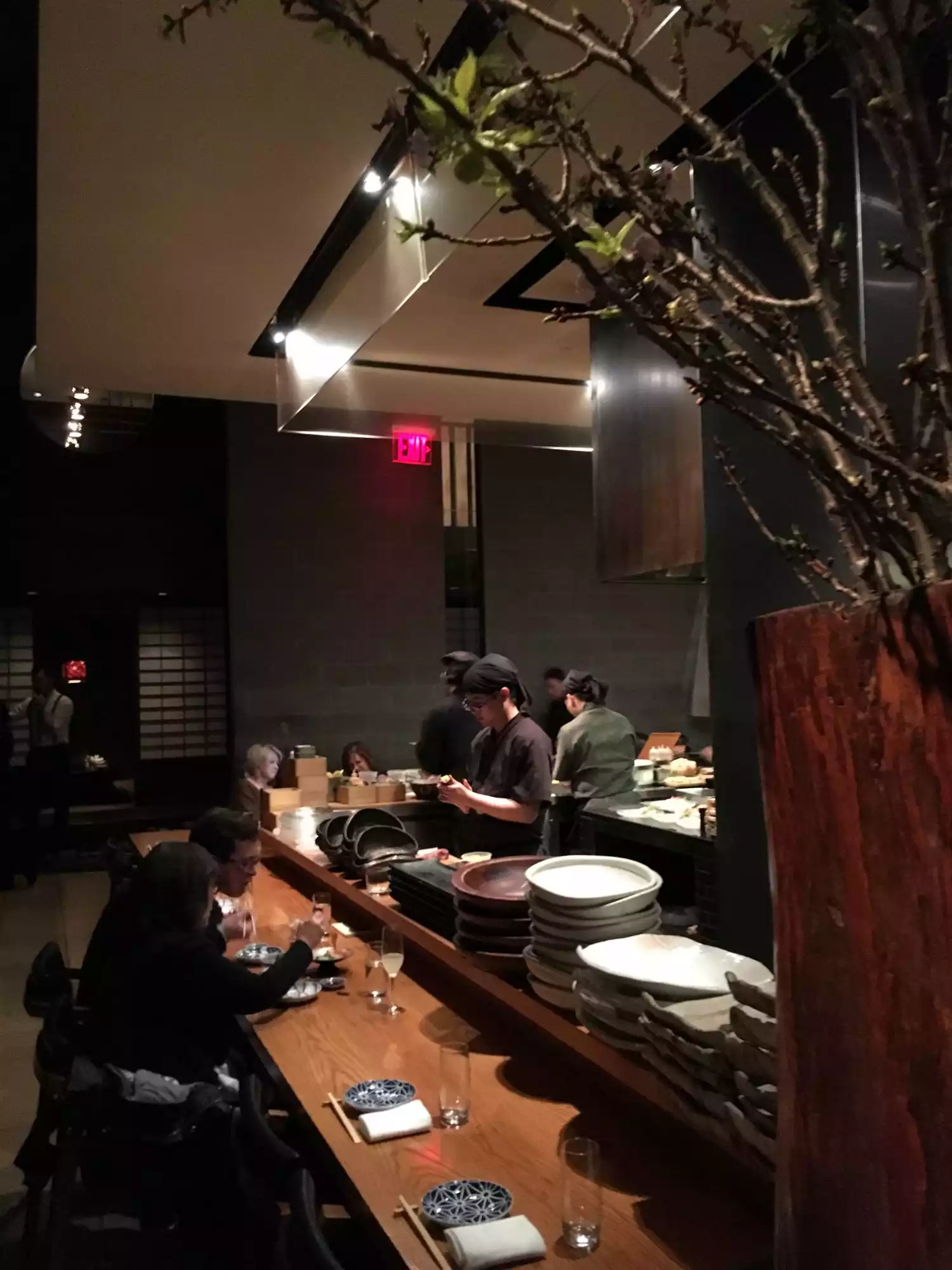 High ceiling dining space with tables distant to each other that it is a very good environment for business chats. Sushi Bar dining table setting apart from many tables. Interesting tasting menu (3 level selection)with matching Saka is served. Extremely reasonable price as what it is served. Soko kaza was chosen by my host but Aozora was much appealing to me; sashimi was on average but the mushroom appetizer was excellent. Waiters behavior were exceptionally good as In New York the typical service behavior is the worst in the world standard, sorry to say that as my 30+ year New York visit experience tells. Book days in advance.