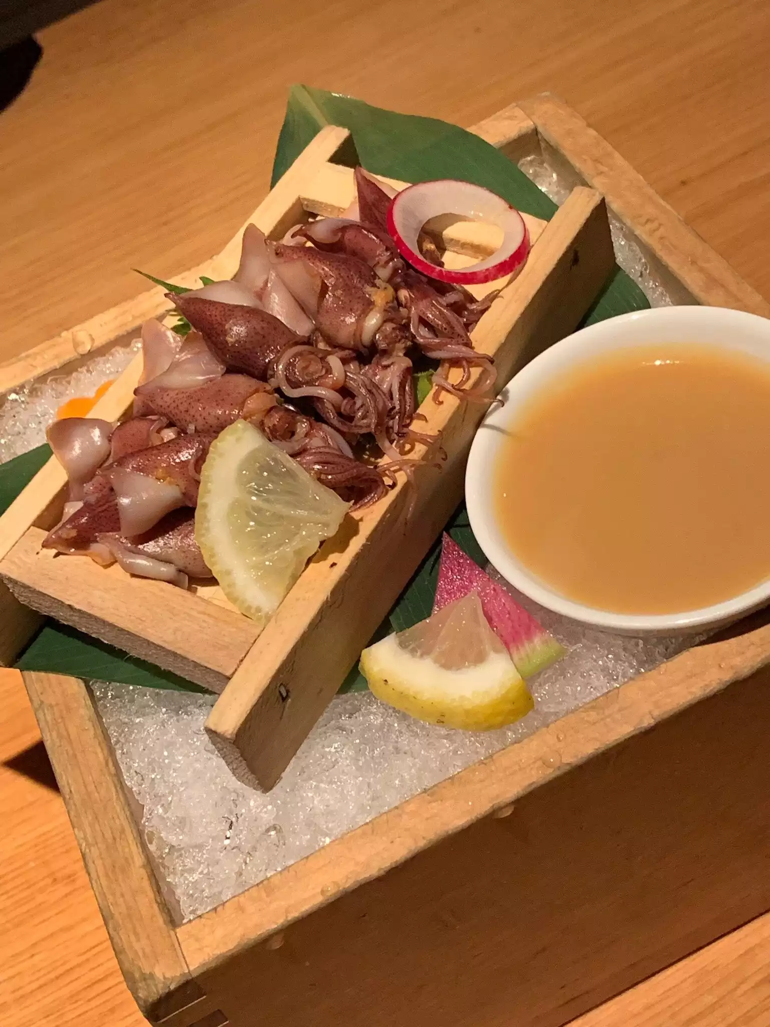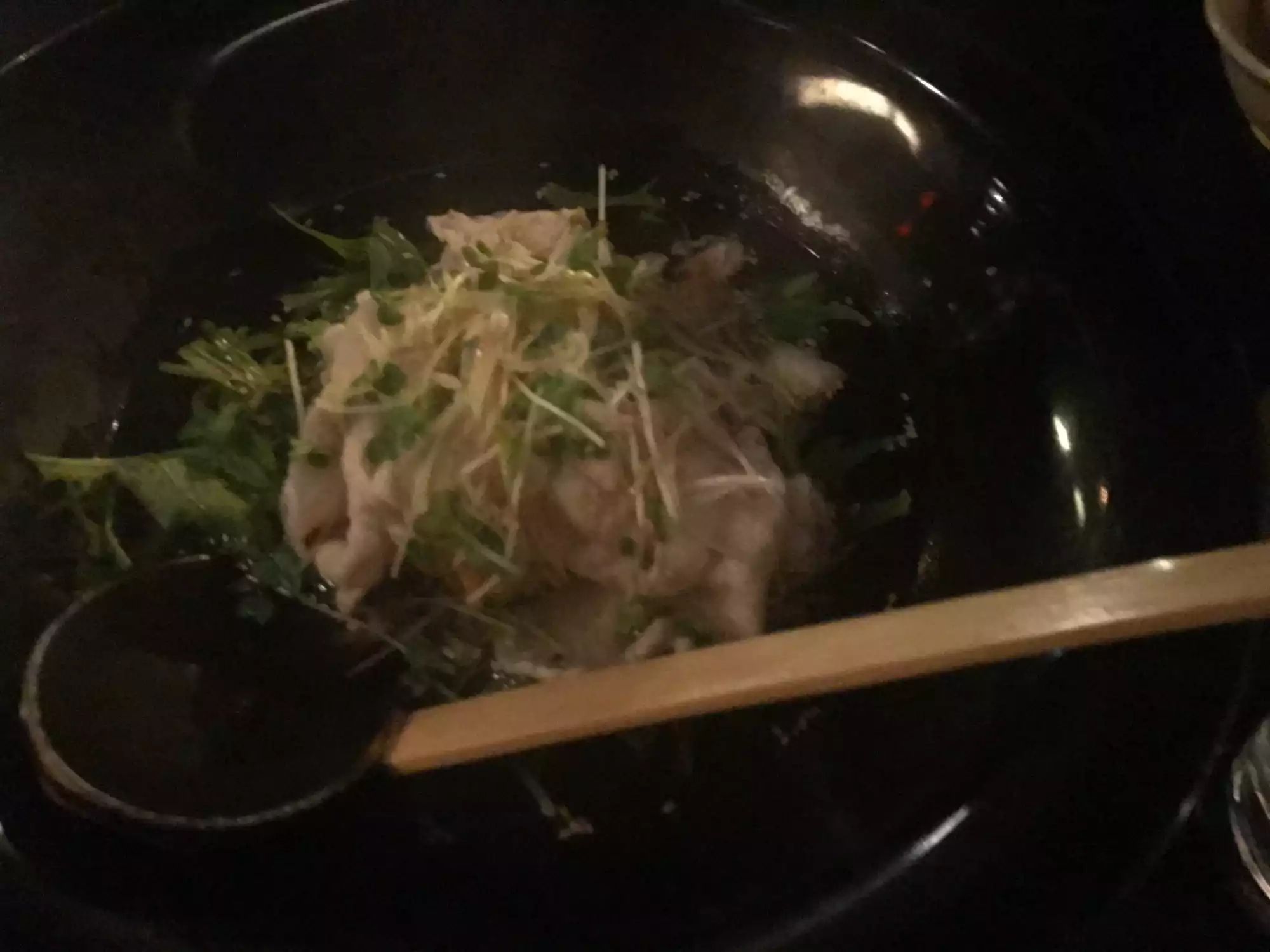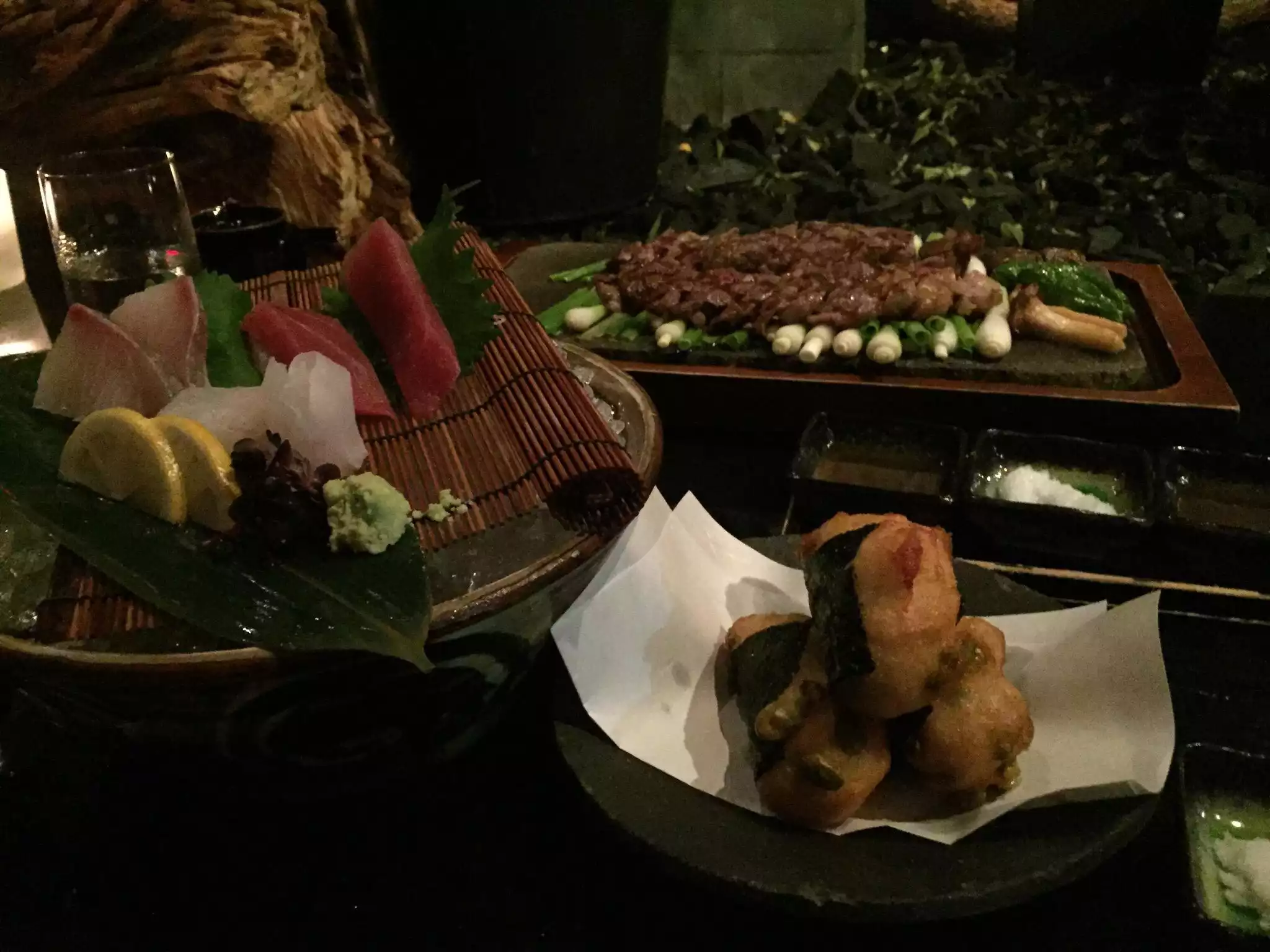I went with two other friends. First of all, the restaurant is stunning, with the Japanese wood paneling, nice trendy bar and the food divine. I had the appetizer pork with veggies in a shabu dashi broth which is just divine. It was so large and enough as an entree. Friends had the sashimi which was the freshest. Dry sake to wash it all down. Dessert, the matcha tiramisu was the best.