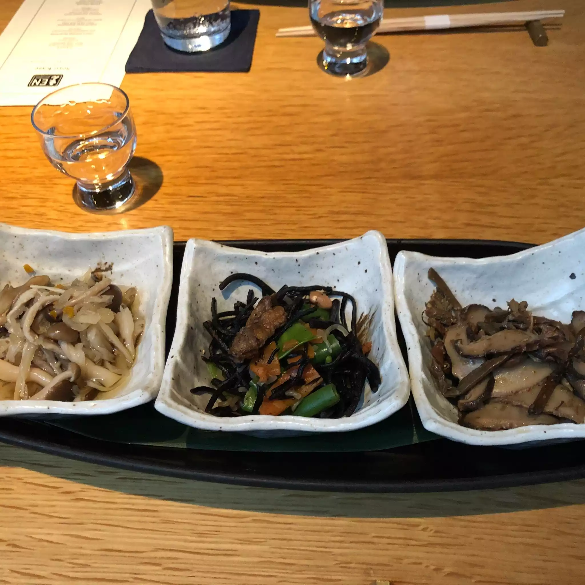 Ordered the same as everyone else, a set menu. Delicious but strange that every dish was explained to us in spite of having been given a personal menu of what we were getting. Sake with every course. Everything really good.