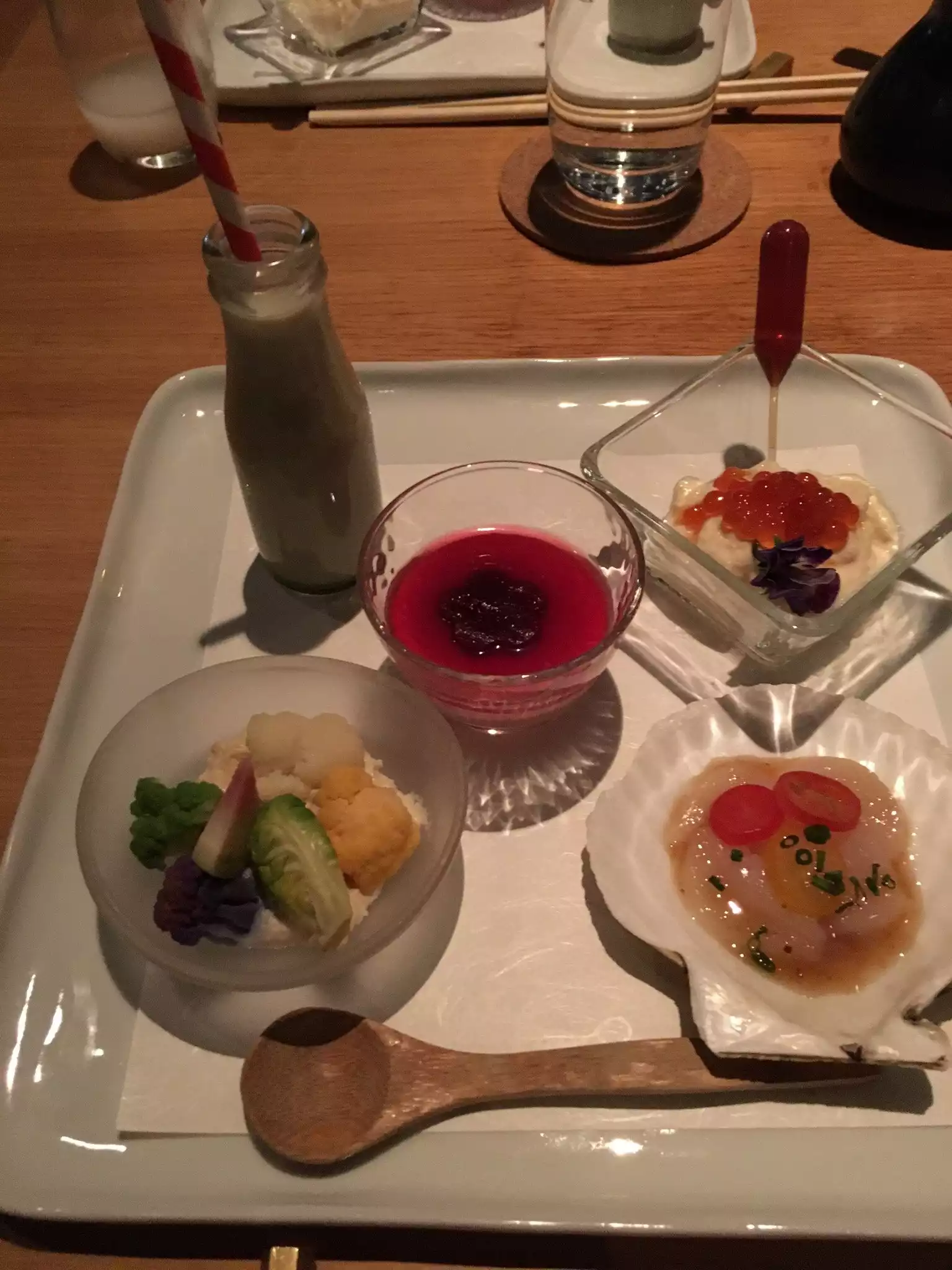 I went to this restaurant as a birthday dinner with a friend and was so excited to get to try the restaurant, on paper the concept sounds amazing and the space is beautiful. we both ordered the komorebi and it was off to a bad start from the beginning. the first course was a series of weirdly flavoured gelatinous things that were borderline difficult to even swallow. next came the vegetables which were fine but just didn’t have any complexity. then the sashimi… i currently live in a double land locked state and have had better fish at less fine establishments as this one. five pieces of chewy cheap bottom shelf fish is how i would summarise it. the steamed lobster seemed it would be a saving grace, as it was the first satisfactory part of the experience, but what came next continued to disappoint. the wagyu course was two pieces of wagyu that seemed to have been cooked in a easy bake oven. they were warm, that’s the only descriptor the flavour was not really there. it tasted how a bag of meat that had been in the fridge for too long smells. the somen with duck was incredible, i would have loved to have ordered something like that but as a normal portion. since we were still hungry we ordered two more rolls (the snowcrab and spicy chu toro rolls). they did get us to being full but they still lacked the complexity to bring the flavour and quality of the fish to light. then came the dessert course which was a flavourless panacotta the flavour was supposed to be matcha but it was like if i had drank matcha and breathed it onto the dessert. it was absolutely flavourless and really not a good conclusion to that misfire of a tasting menu. it was 500 (including a gracious gratuity) for two of the tasting menus, two glasses of wine, and two rolls. if the cost of the meal had been maybe some 150 less i would probably not be writing this review but the quality of the experience did no where near meet the cost of the experience.
