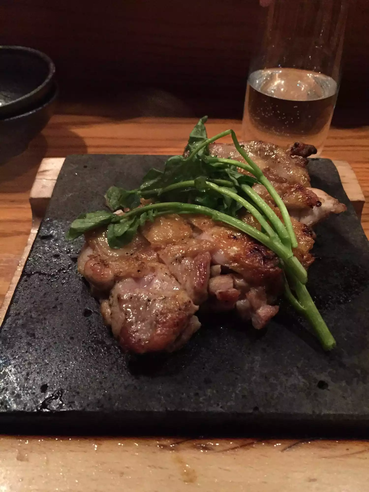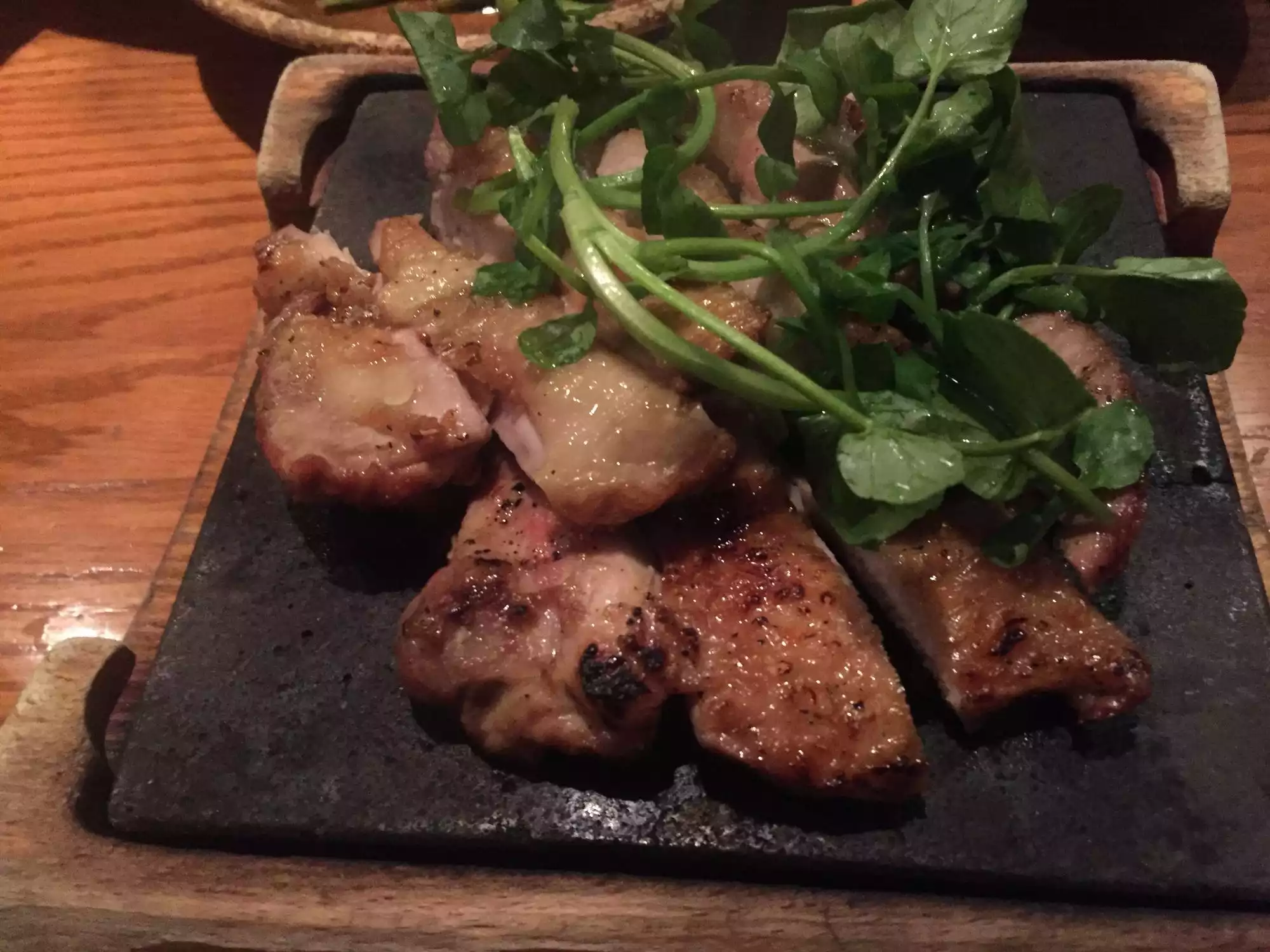 My second visit. A menu with lots of inventive japanese dishes as well as classic offerings. Good saké, not cheap. Good service, efficient. LIGHTING IN THE FRONT ROOM WAY TOO DIM! Sorry for the caps but really, no human can read menus in that light. Please, please, fix this!! Otherwise, the fried chicken was just ok, not well seasoned. th hamachi fish collar was not particularly generous or good, and I know this dish well.