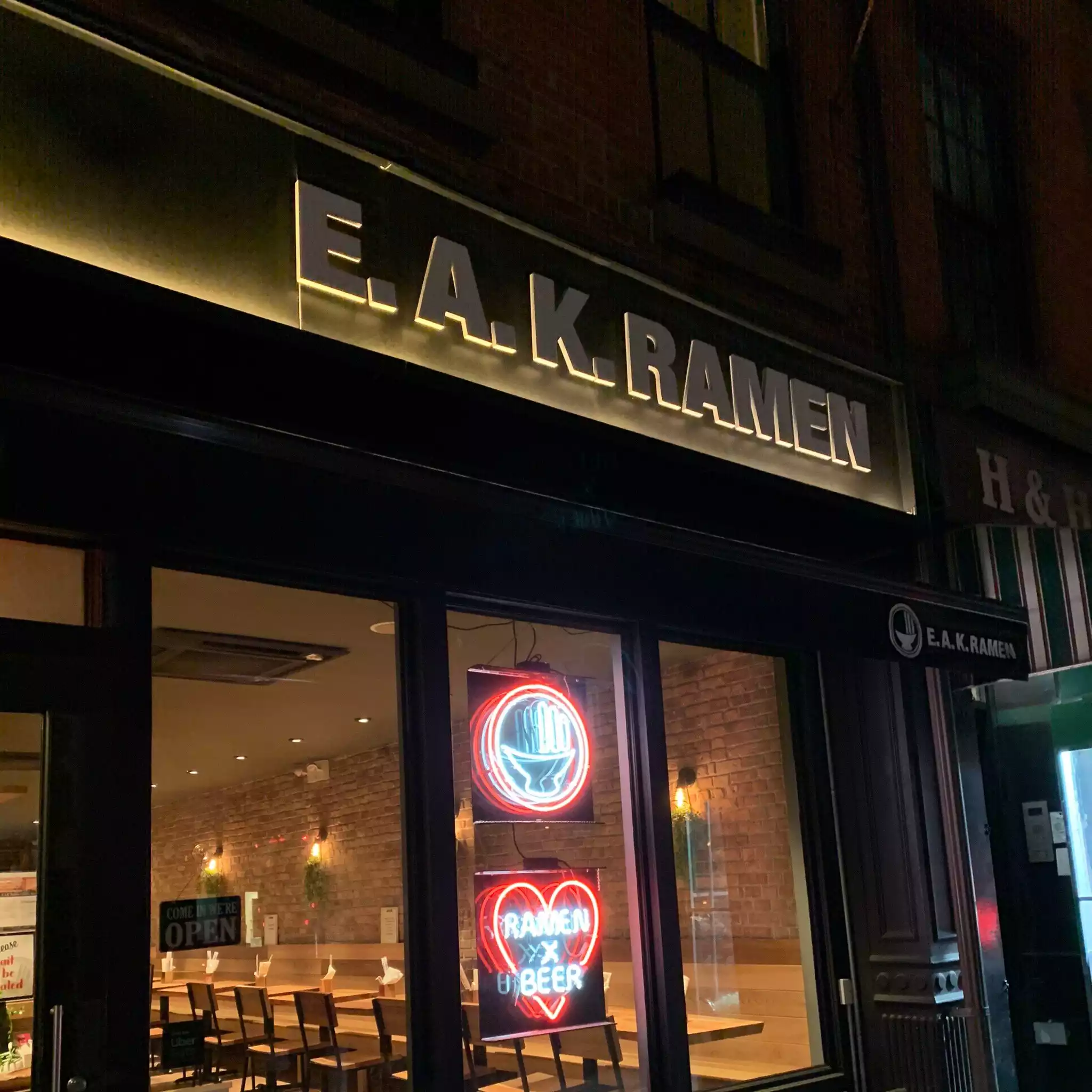 Pleasant little place, modern, clean and lovely friendly staff.. Went in here about 11pm one night after a long working day,,, and lovely cold Sapporo beer and a decent Ramen.. I had the EAK Shoyo and some takoyaki, all rather lovely... Raman is simple food, but its hard to do simple food well and this was done rather well... Its not a cosy, romantic place, its bordering on the look of a fast food place, but all round pretty good, as was the second Sapporo