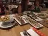 I was in shock to see how the severs were handling the silverware. From bartenders to servers. I saw servers grabbing glasses from the top putting their fingers, not to mention when the servers were filling the stations using their hands carrying all the silverware(Please try not to touch the part were customer put their mouth)Then you have to eat using the same. Hair was everywhere at my table. I guess notting the hair is not a requirement. I would consider twice before eating at this place again. Food was fine it seems the kitchen is doing great. floor manager is missing tremendously. Gm keep an eye on the floor