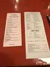 Nice happy hour menu on local bear, a few mixed drinks, and a selection of inexpensive beer friendly munchies. Can’t beat the location on patio overlooking the creek. Too breezy for ping pong though.